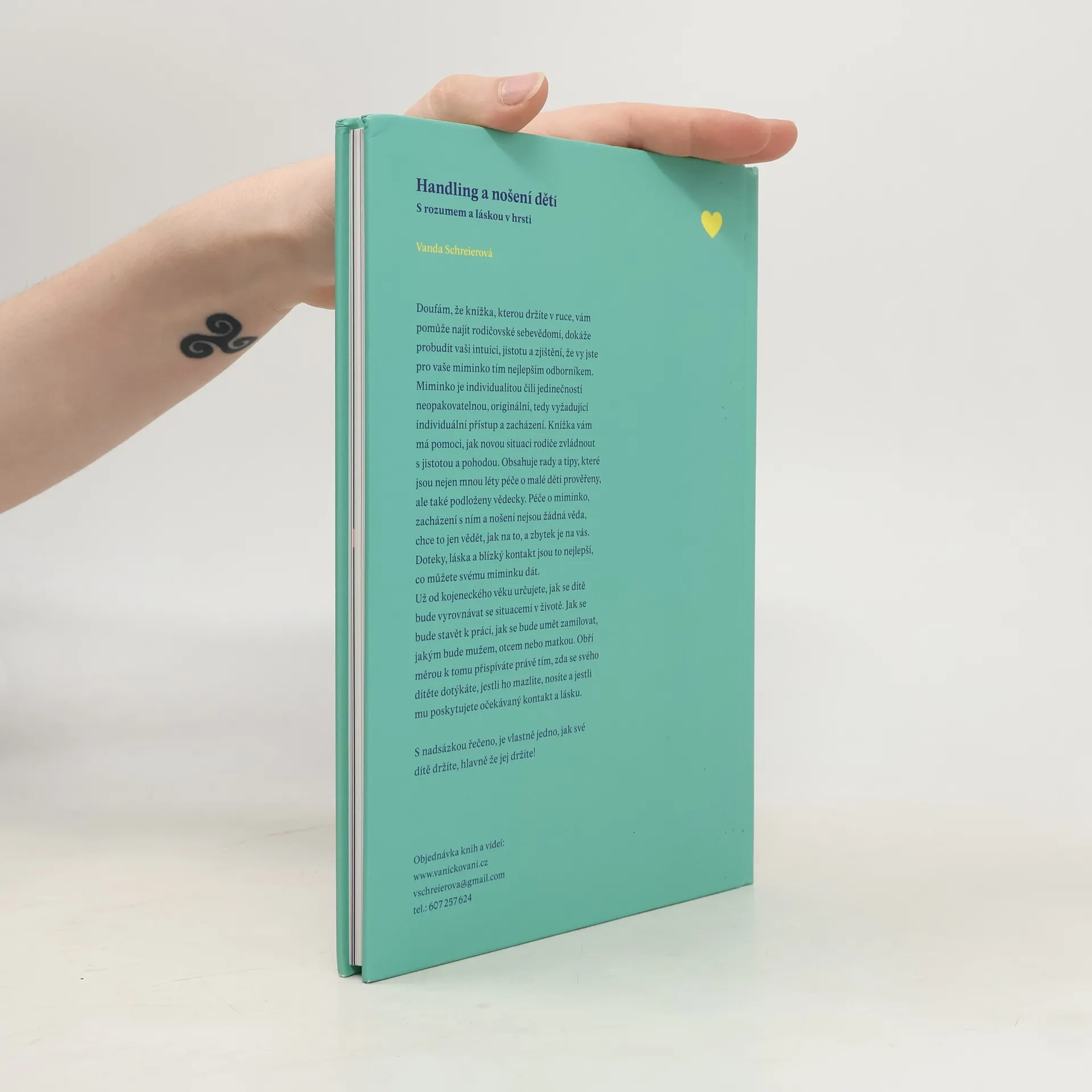 Zacházení s miminkem neboli handling - zcela přirozenou schopnost, kterou má každá milující matka v sobě, tzn. že umí intuitivně, tedy správně zvedat, nosit, oblékat, přebalovat své miminko. Toto laskavé a cituplné chování vůči dítěti lze těžko popsat slovy a Vanda Schreierová zvládá popis s lehkostí pomocí sledování pohybových schopností nejmenších dětí na principu znalostí vědeckého oboru kinestetiky.