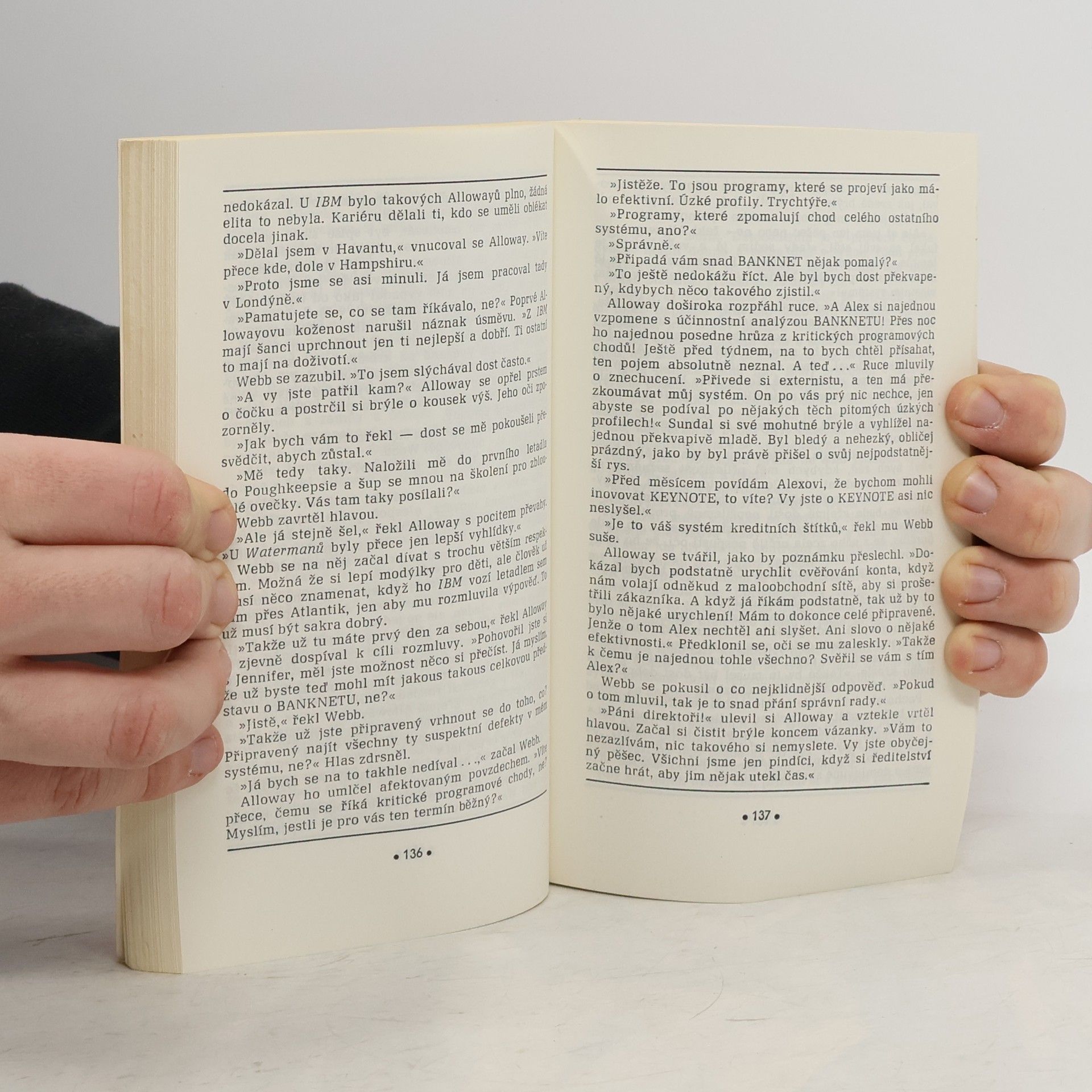 Říká se, že jediná věc je ještě důmyslnější než jemné předivo dat a programů vkládaných do počítačů: podvod spáchaný pomocí computeru. John McNeil, počítačový expert a spoluzakladatel velké poradenské firmy, využil svých zkušeností k vytvoření přesvědčivé atmosféry výpočetního bunkru, pevnosti skrývající elektronický mozek britského finančního kolosu. Příběh konzultanta Christophera Webba, který nalezne, co hledal - rafinovaně koncipovaný a dokonale zamaskovaný systém defraudací - tímto odhalením teprve začíná. Vrstva za vrstvou se skládají hádanky McNeilova románu do složitého, ale přesto plastického a zcela věrohodného obrazu londýnské City. I pro laického čtenáře se stává přísná logika výpočetní techniky živou skutečností, s napětím může sledovat lov na computerový fantóm pojmenovaný "myška". Ale i profesionální programátor ocení McNeilův vypravěčský talent, s nímž líčí osudy mužů i žen kolem počítačů, jejich kalkulace i vášně, a především duel dravců finančního kapitálu, vedený sice nejmodernějšími zbraněmi, ale řídící se přesto pravidly prastarého obrazu - dravé ryby žerou menší rybky a samy se přitom stávají kořistí ještě větších dravců.