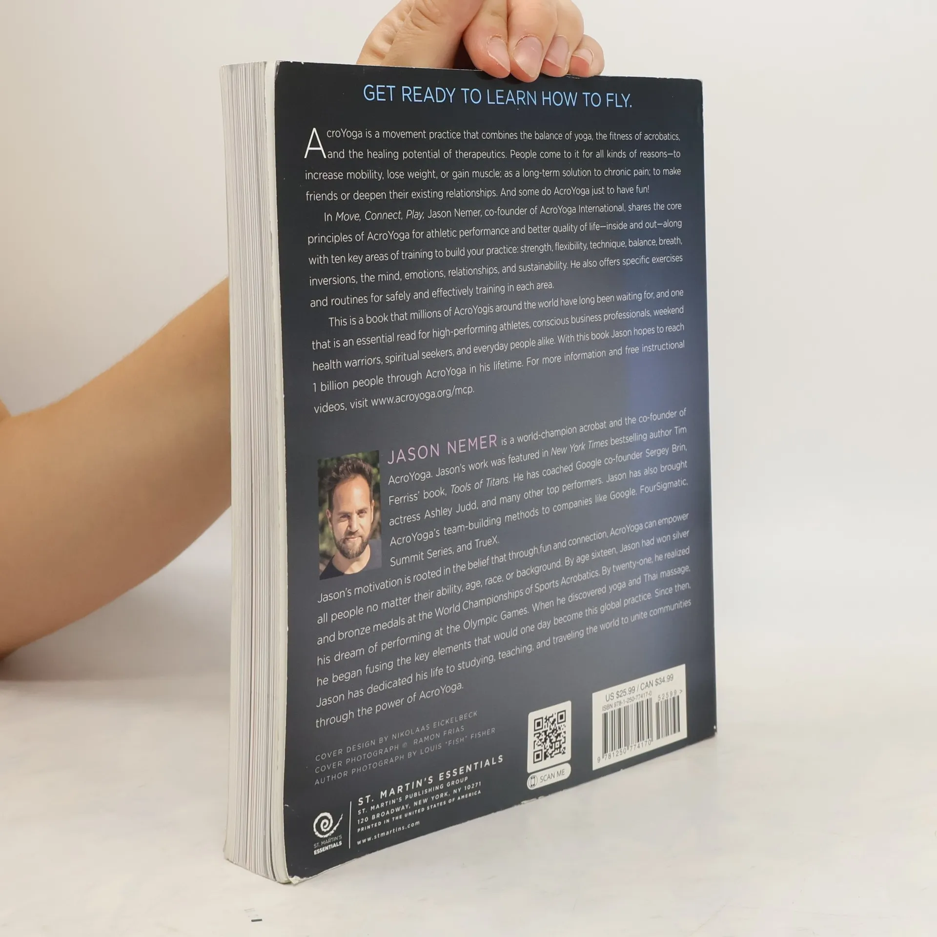 Move, Connect, Play is a book detailing the core principles of AcroYoga, a practice that melds the spectacle of circus arts with the healing power of massage and the breathwork of yoga. Get ready to learn how to fly. AcroYoga is a movement practice that combines the balance and connection of yoga with the fitness and intensity of acrobatics, as well as the holistic healing power of physical therapy. People come to it for all kinds of reasons—they may have chronic pain and are looking for a long-term solution to manage it, they may want to lose weight, gain muscle or increase their mobility, or maybe they just want to experience it with their friends or partners to deepen their relationships. Some even just want to have some fun together. In Move, Connect, Play, founder of AcroYoga International Jason Nemer shares the core principles of AcroYoga for athletic performance and for life, as well as 10 key areas of training (strength, flexibility, technique, balance, breath, gravity, relationships, mental, emotional, and sustainability). He also offers specific exercises and routines for how to train safely and effectively in each area. This is a book that millions of AcroYogis around the world have long been waiting for, and one that is an essential read for high-performance athletes, weekend health warriors, and spiritual seekers alike.