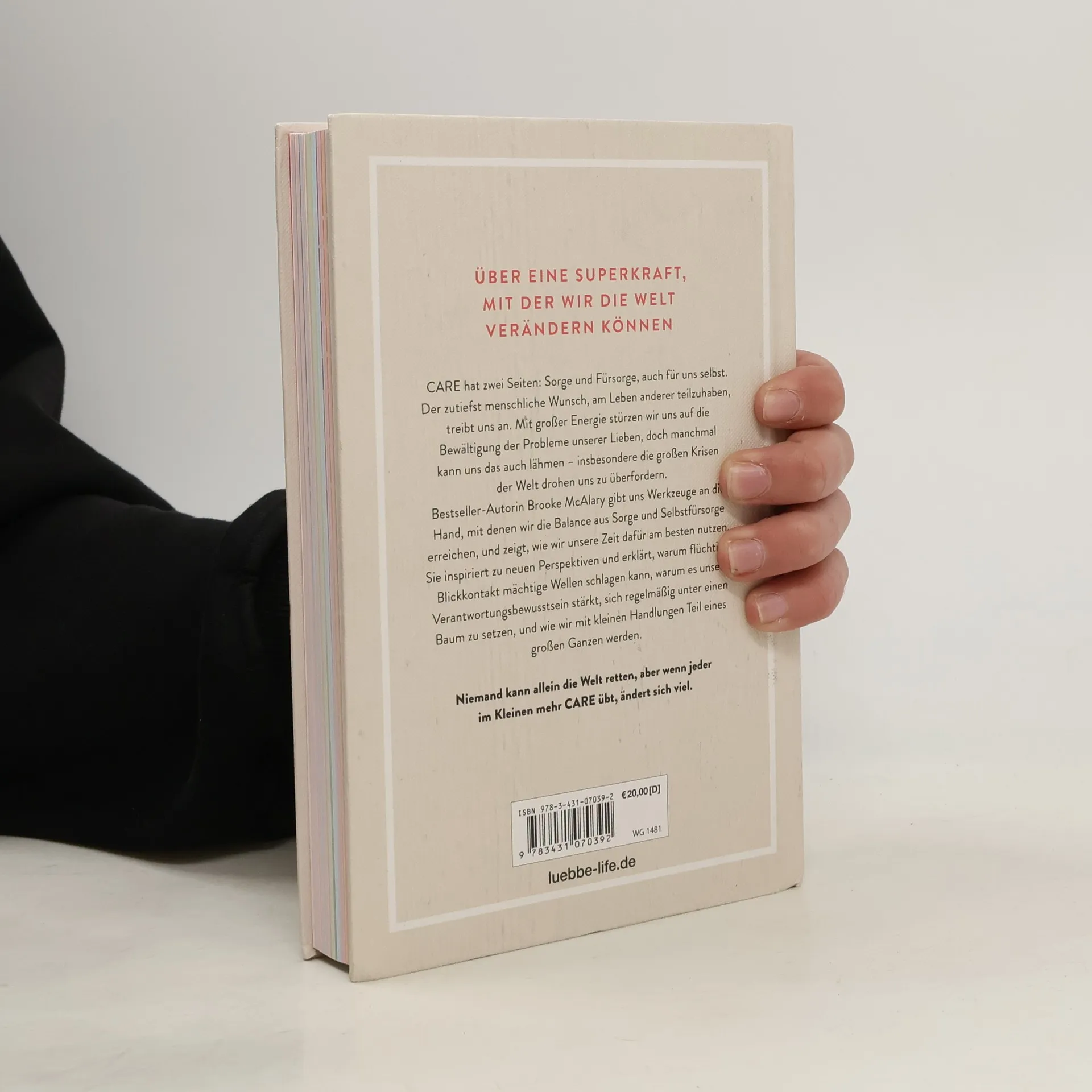 Was würde passieren, wenn wir alle ein wenig sorgsamer, achtsamer und aufmerksamer wären - den Mitmenschen, der Umwelt und uns selbst gegenüber? Niemand kann allein die Welt retten, aber wenn sich im Kleinen jeder mehr in CARE übt, ändert sich viel. Ob es der Blickkontakt mit der Supermarktkassiererin ist, oder eine Wertschätzung für den Apfel, bevor wir ihn verspeisen. Wie bereichernd es doch ist, weniger auf unsere Handys und mehr in die Gesichter der Mitmenschen zu schauen. Wie gut es uns tut, wenn wir der Welt mit Fürsorge, Verantwortung und Menschlichkeit begegnen. Brooke McAlary nimmt uns mit auf eine Reise, auf der wir die kleinen Freuden wiederentdecken, die große Wirkung haben.