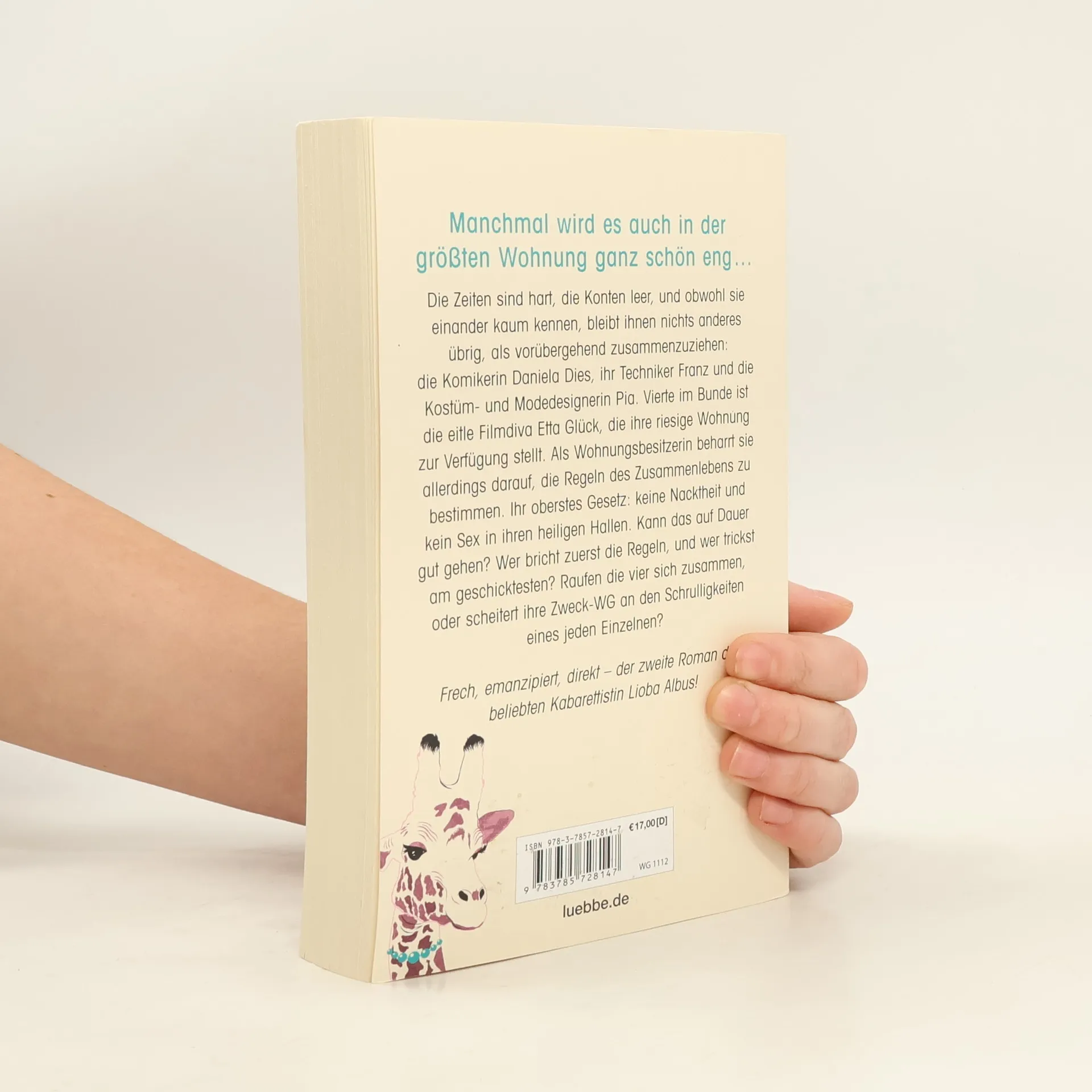Manchmal wird es auch in der größten Wohnung ganz schön eng ... Die Zeiten sind hart, die Konten leer, und obwohl sie einander kaum kennen, bleibt ihnen nichts anderes übrig, als vorübergehend zusammenzuziehen: die Komikerin Daniela Dies, ihr Techniker Franz und die Kostüm- und Modedesignerin Pia. Vierte im Bunde ist die eitle Filmdiva Etta Glück, die ihre riesige Wohnung zur Verfügung stellt. Als Wohnungsbesitzerin beharrt sie allerdings darauf, die Regeln des Zusammenlebens zu bestimmen. Ihr oberstes Gesetz: keine Nacktheit und kein Sex in ihren heiligen Hallen. Kann das auf Dauer gut gehen? Wer bricht zuerst die Regeln, und wer trickst am geschicktesten? Raufen die vier sich zusammen, oder scheitert ihre Zweck-WG an den Schrulligkeiten eines jeden Einzelnen? Vier erwachsene Menschen, vier Individualisten in einer Zweck-WG. Kann das gut gehen? Humorvoll und mit einem Augenzwinkern lässt die beliebte Kabarettistin Lioba Albus ihre Held:innen aufeinander los. Für sie steht fest: Zusammen ist man weniger gemein!
