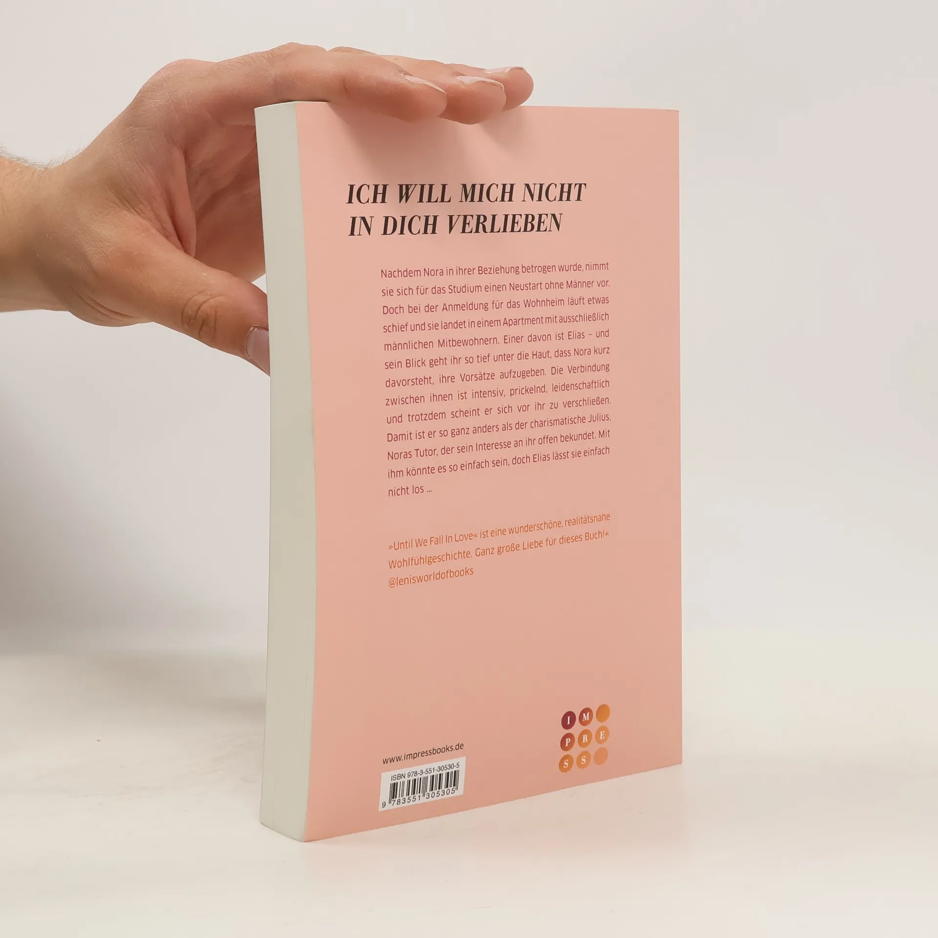 **Ich will mich nicht in dich verlieben** Nachdem Nora in ihrer Beziehung betrogen wurde, nimmt sie sich für das Studium einen Neustart ohne Männer vor. Doch bei der Anmeldung für das Wohnheim läuft etwas schief und sie landet in einem Apartment mit ausschließlich männlichen Mitbewohnern. Einer davon ist Elias – und sein Blick geht ihr so tief unter die Haut, dass Nora kurz davorsteht, ihre Vorsätze aufzugeben. Die Verbindung zwischen ihnen ist intensiv, prickelnd, leidenschaftlich und trotzdem scheint er sich vor ihr zu verschließen. Damit ist er so ganz anders als der charismatische Julius, Noras Tutor, der sein Interesse an ihr offen bekundet. Mit ihm könnte es so einfach sein, doch Elias lässt sie einfach nicht los ... Eine knisternde Slow Burn Romance voll greifbarer Spannung und tiefer Emotionen. »Until We Fall In Love“ ist eine wunderschöne, realitätsnahe Wohlfühlgeschichte, die mir während dem Lesen immer wieder ein Lächeln ins Gesicht gezaubert hat. Nora, Elias und Julius kann man mit ihren liebenswerten Eigenschaften nur ins Herz schließen. Ganz große Liebe für dieses Buch!« @lenisworldofbooks //»Until We Fall In Love« ist ein in sich abgeschlossener Einzelband.//