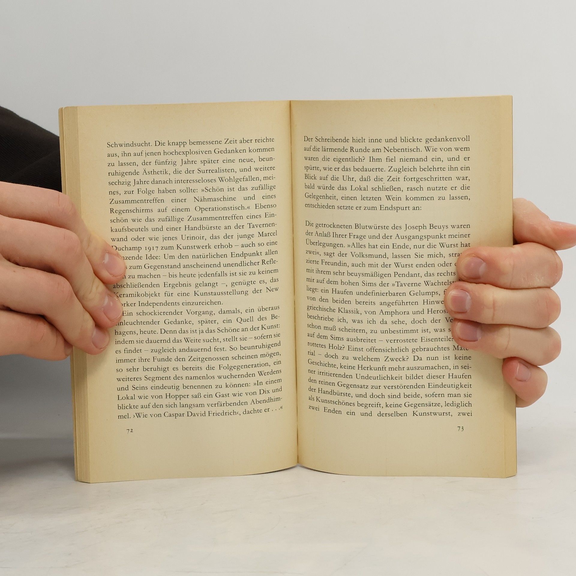 Drei berühmtgewordene Variationen auf ein Thema: Es geht um Kunst und Künstler. In ›Glück‹ stellt sich Gernhardt die so oft diskutierte und nie wirklich gelöste Frage: Hat die Literatur Folgen? Verschmitzt erzählt er als Antwort darauf, wie seine wiederholte Lektüre von Hemingways Roman ›Fiesta‹ sein eigenes Weihnachtsfest unterwandert. Ob nun vertrocknete Blutwürste von Beys als ein Kunstwerk zu betrachten sind, versucht Gernhardt alias Norberg Gamsbart in ›Glanz‹ bei viel Wein mit Hinweis auf die Einrichtung der Taverne Wachtelstubb zu klären. Und was es eigentlich für einen Schriftsteller bedeutet der »unio mystica von Kohle und Gloriole« nachzujagen, erfährt man in ›Ruhm‹ zum Abschluß des Bandes. Gernhardt versteht es meisterlich, das Bedeutende und Pathetische ins Alltägliche zurückzuholen; seine Texte sind ebenso scharfsinnig wie spielerisch, voller Hintersinn und zugleich ungeheuer komisch.