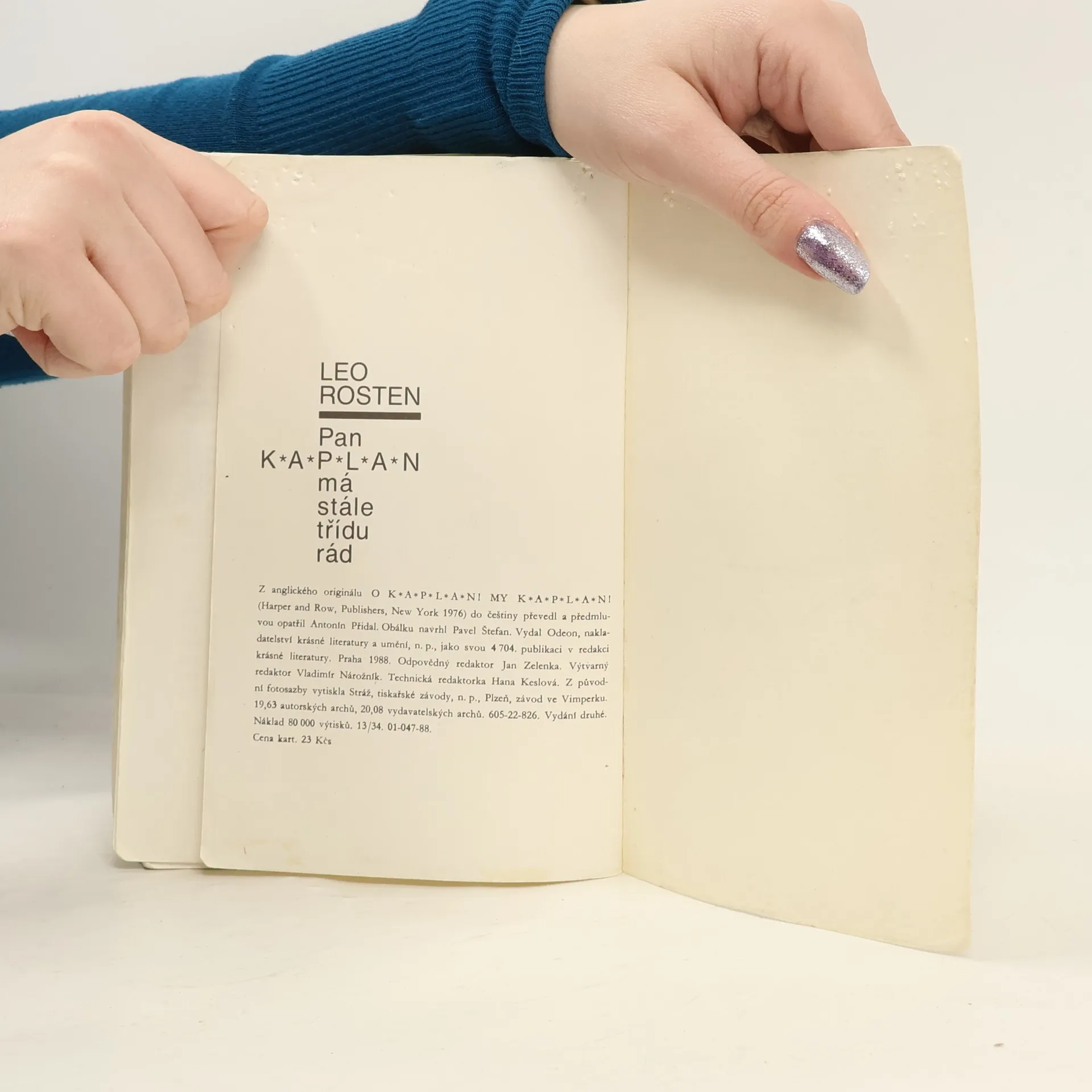 Když Leo Rosten podepisoval roku 1963 smlouvu na vydání svých dvou humoristických knih o panu Kaplanovi (první z nich znají naši čtenáři v podání Pavla Eisnera), netušil, kolik dřiny ho čeká. Vyzrálý spisovatel se totiž nakonec nespokojil pouhým spojením obou předchozích knih a dobrodružství přistěhovalce do Ameriky a „jazykového převratníka“ pana Kaplana, který se s osobitou logikou prodírá záludnou houštinou angličtiny, zcela přepracoval a obohatil o další epizody a postavy, takže v roce 1976 se objevila zbrusu nová kniha. Této hozené rukavice se chopil Antonín Přidal, aby se po čtyřiceti letech od prvního vydání Eisnerova zpracování páně Kaplanových jazykových klauniád pokusil o vlastní variantu. Jsme svědky překladatelského koncertu, jehož sólistou je jazyk, ohňostroje slovních pitvorností, zkomolenin a přehmatů, kterých se — ovšemže na češtině — dopouští pan Kaplan i ostatní svěřenci začátečnické třídy profesora Parkhilla na newyorské Večerní přípravné škole pro dospělé. Pan Kaplan se tvrdošíjně odmítá řídit jakýmikoliv jazykovými pravidly a konvencemi, jako by chtěl celý jazyk „vybudovat znovu a od základů'', a proto učebna připomíná spíše soudní síň, „kde je před soudní stolici postaven sám jazyk“, či bojiště, na němž pan Kaplan nemíní ustoupit „ani o píďu“. Díky této kongeniální variaci na Rostenovo téma se účastníme velkolepé oslavy naší mateřštiny, z níž Antonín Přidal vykouzlil nádhernou fantaskní grotesku.