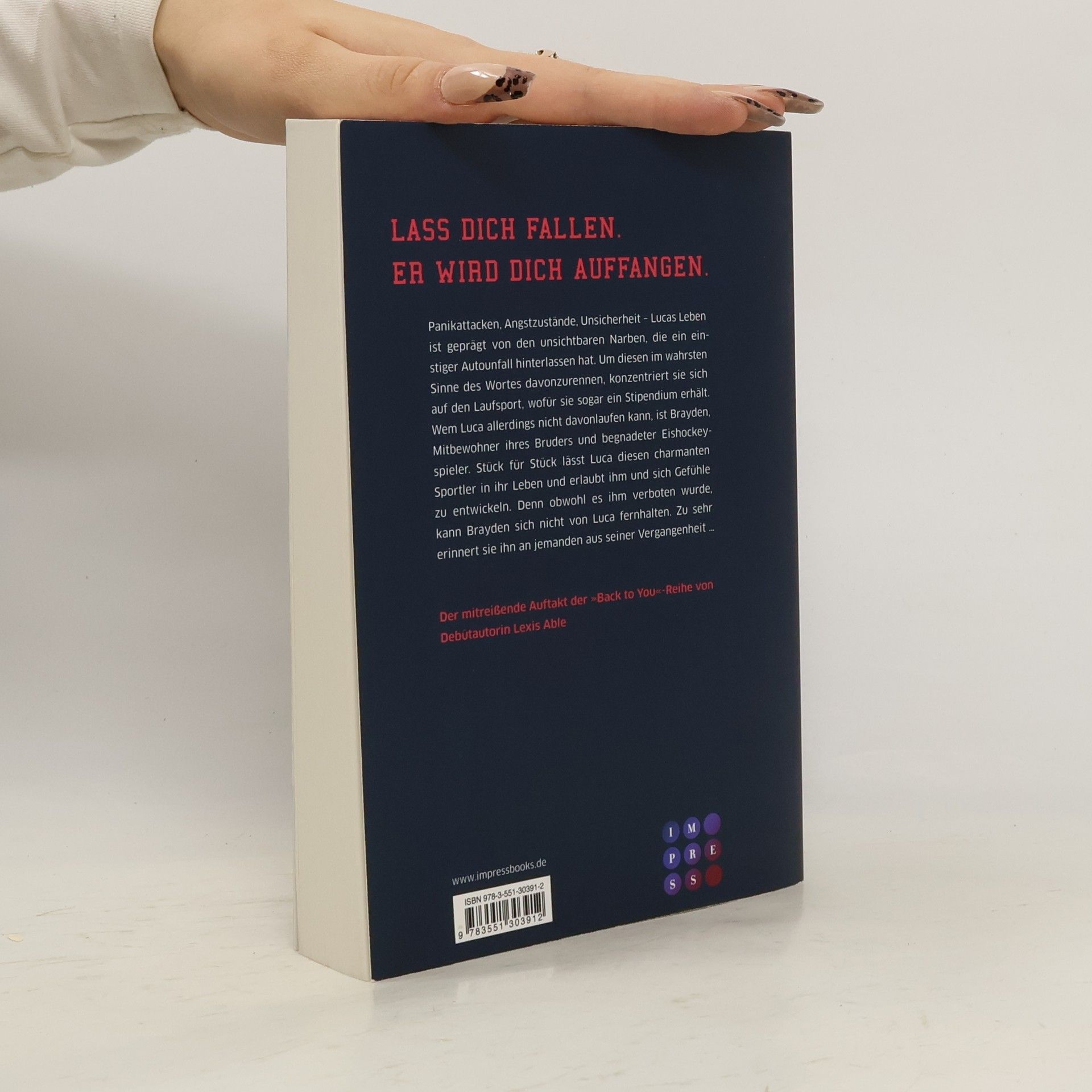 **Lass dich fallen. Er wird dich auffangen.** Panikattacken, Angstzustände, Unsicherheit – Lucas Leben ist geprägt von den unsichtbaren Narben, die ein einstiger Autounfall hinterlassen hat. Um diesen im wahrsten Sinne des Wortes davonzurennen, konzentriert sie sich auf den Laufsport, wofür sie sogar ein Stipendium erhält. Wem Luca allerdings nicht davonlaufen kann, ist Brayden, Mitbewohner ihres Bruders und begnadeter Eishockeyspieler. Stück für Stück lässt Luca diesen charmanten Sportler in ihr Leben und erlaubt ihm und sich Gefühle zu entwickeln. Denn obwohl es ihm verboten wurde, kann Brayden sich nicht von Luca fernhalten. Zu sehr erinnert sie ihn an jemanden aus seiner Vergangenheit ... Gefühlvolle Sports Romance mit Tiefgang zum Dahinschmelzen! //Der Liebesroman »Running Back to You« ist der erste Band der romantischen »Back to You«-Reihe. Alle Bände der gefühlvollen Sports Romance: -- Back to You 1: Running Back to You -- Back to You 2: Crashing Back to You -- Back to You 3: Dreaming Back to You (Juli 2022)//