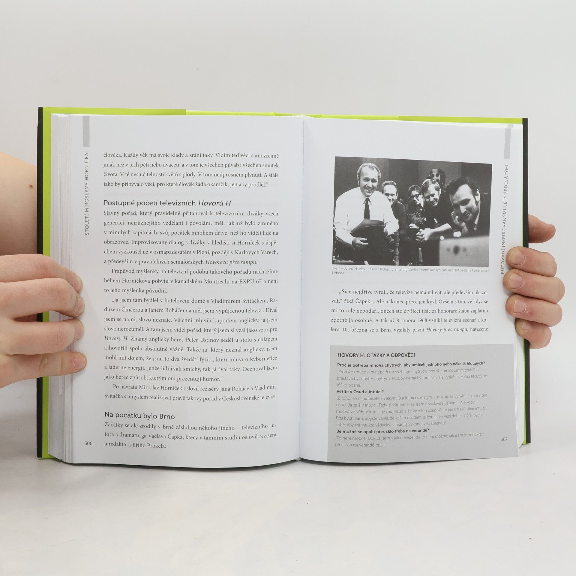 Tato kniha je první dílo, které se podrobně věnuje celé kariéře i životu Miroslava Horníčka. Nejdříve plzeňské působení, pak přestup na pražskou avantgardní scénu, padesátá léta na scéně Národního divadla a Divadlo ABC po boku Jana Wericha, šedesátá léta spojená se Semaforem, Kinoautomatem na montrealském EXPU a slavné Hovory H.