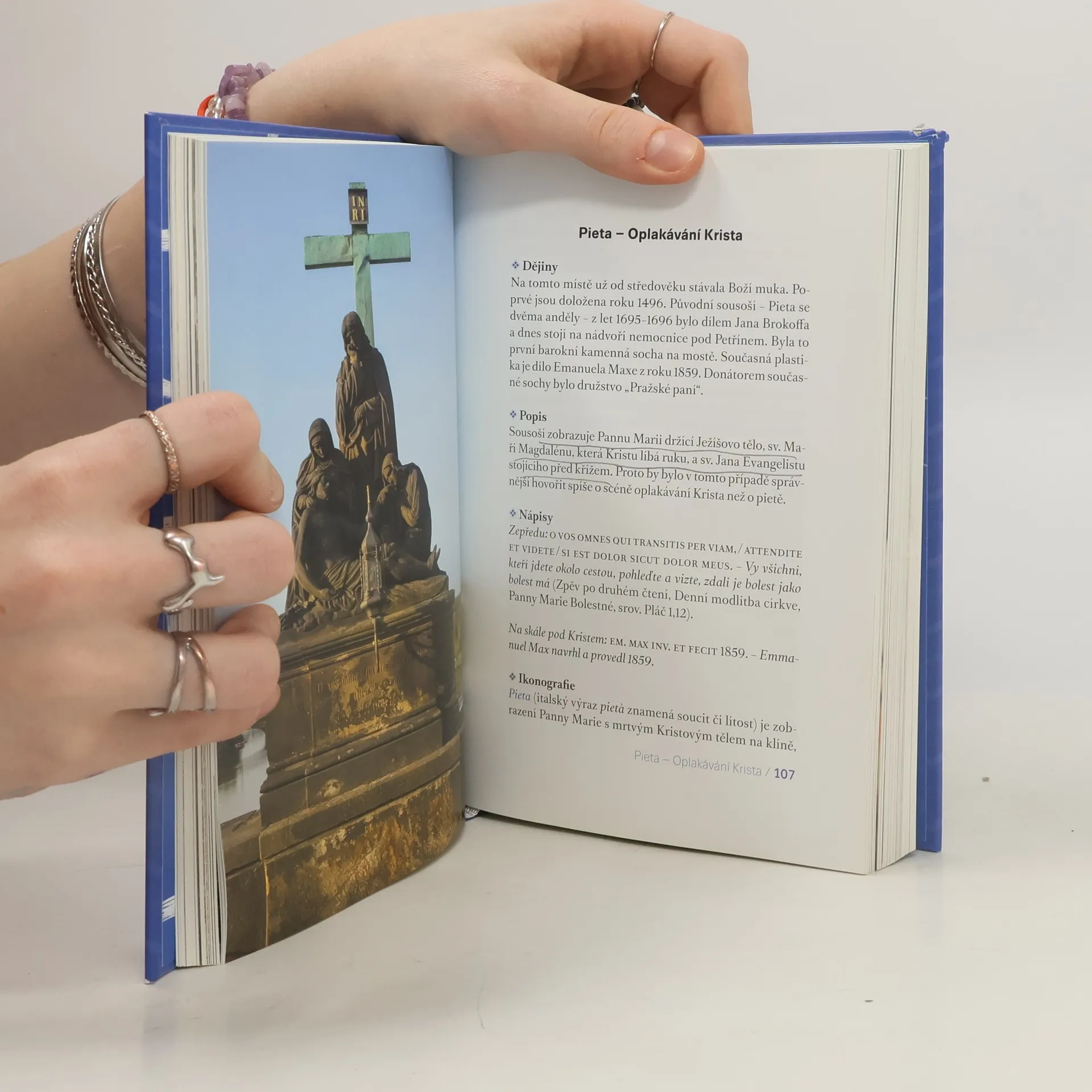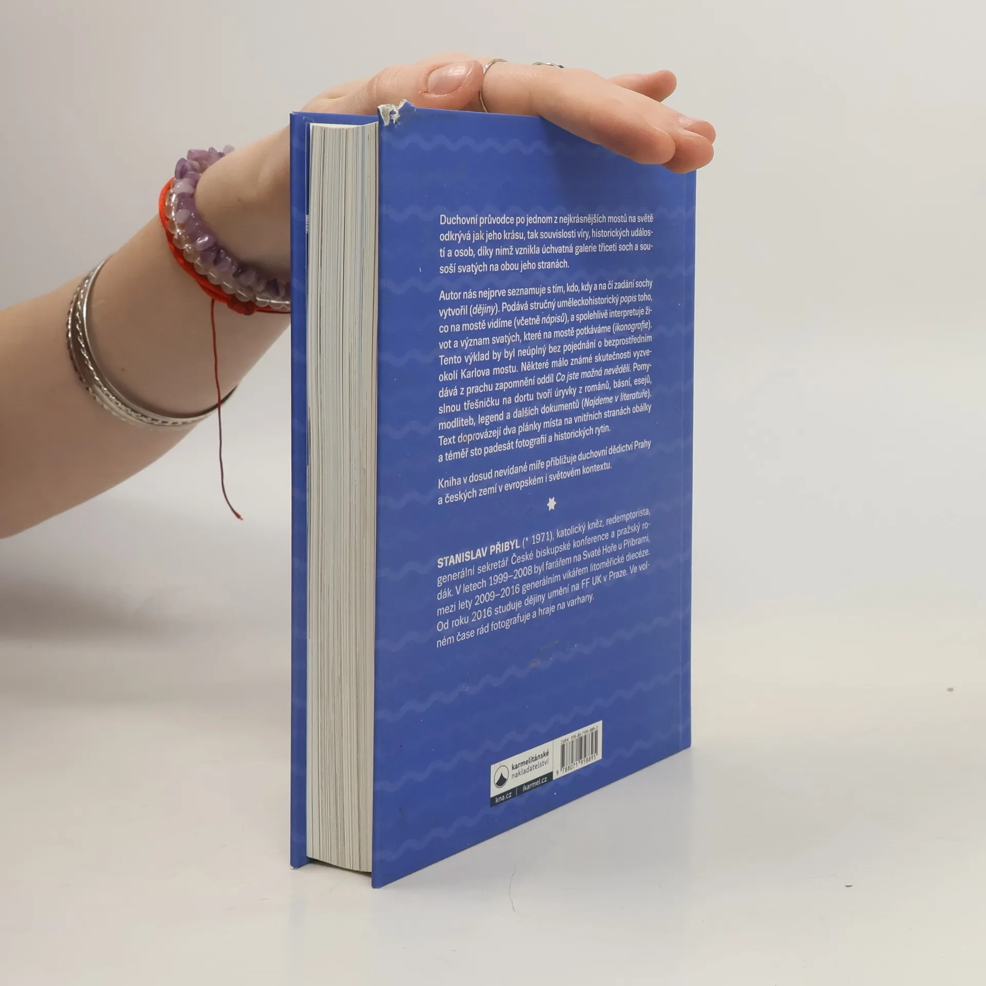 Duchovní průvodce po jednom z nejkrásnějších mostů na světě odkrývá jak jeho krásu, tak souvislosti víry, historických událostí a osob, díky nimž vznikla úchvatná galerie třiceti soch a sousoší svatých na obou jeho stranách. Autor nás nejprve seznamuje s tím, kdo, kdy a na čí zadání sochy vytvořil (dějiny). Podává stručný uměleckohistorický popis toho, co na mostě vidíme (včetně nápisů), a spolehlivě interpretuje život a význam svatých, které na mostě potkáváme (ikonografie). Tento výklad by byl neúplný bez pojednání o bezprostředním okolí Karlova mostu. Některé málo známé skutečnosti vyzvedává z prachu zapomnění oddíl Co jste možná nevěděli. Pomyslnou třešničku na dortu tvoří úryvky z románů, básní, esejů, modliteb, legend a dalších dokumentů (Najdeme v literatuře). Text doprovázejí dva plánky místa na vnitřních stranách obálky a téměř sto padesát fotografií a historických rytin. Kniha v dosud nevídané míře přibližuje duchovní dědictví Prahy a českých zemí v evropském i světovém kontextu.
