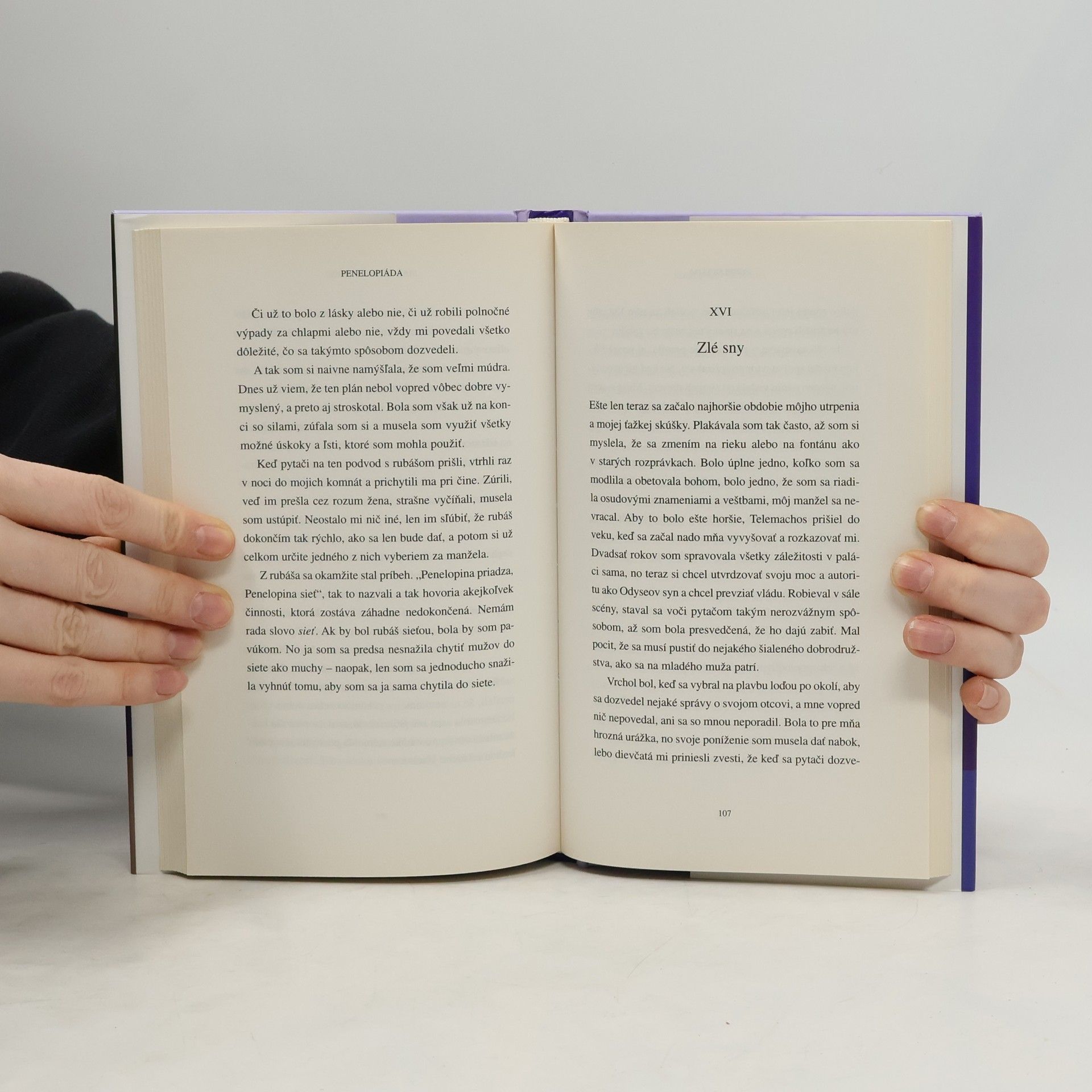 Román Penelopiáda kanadskej autorky Margret Atwoodovej vychádza z jedného z najvýznamnejších starogréckych mýtov. Homérovo rozprávanie je však pre ňu už len jednou z verzií, a tak tento notoricky známy príbeh rozpráva po novom, z perspektívy Penelopy. Atwoodová nachádza v Homérovom rozprávaní dosť nezrovnalostí na to, aby mala dôvod pozrieť sa na celý „prípad“ z novej strany. Postupuje ako archeologička textu, pod starými nánosmi sa objavujú nové, neznáme vrstvy, ktoré logicky zapadajú práve tam, kde Homérov príbeh vytvára hiáty a nezrovnalosti. Atwoodová s nadhľadom spochybňuje kanonizovanú verziu príbehu a s jemným vtipom komentuje nielen pseudohrdinstvo Odysea, ale aj naučené feminínne správanie sa Penelopy.