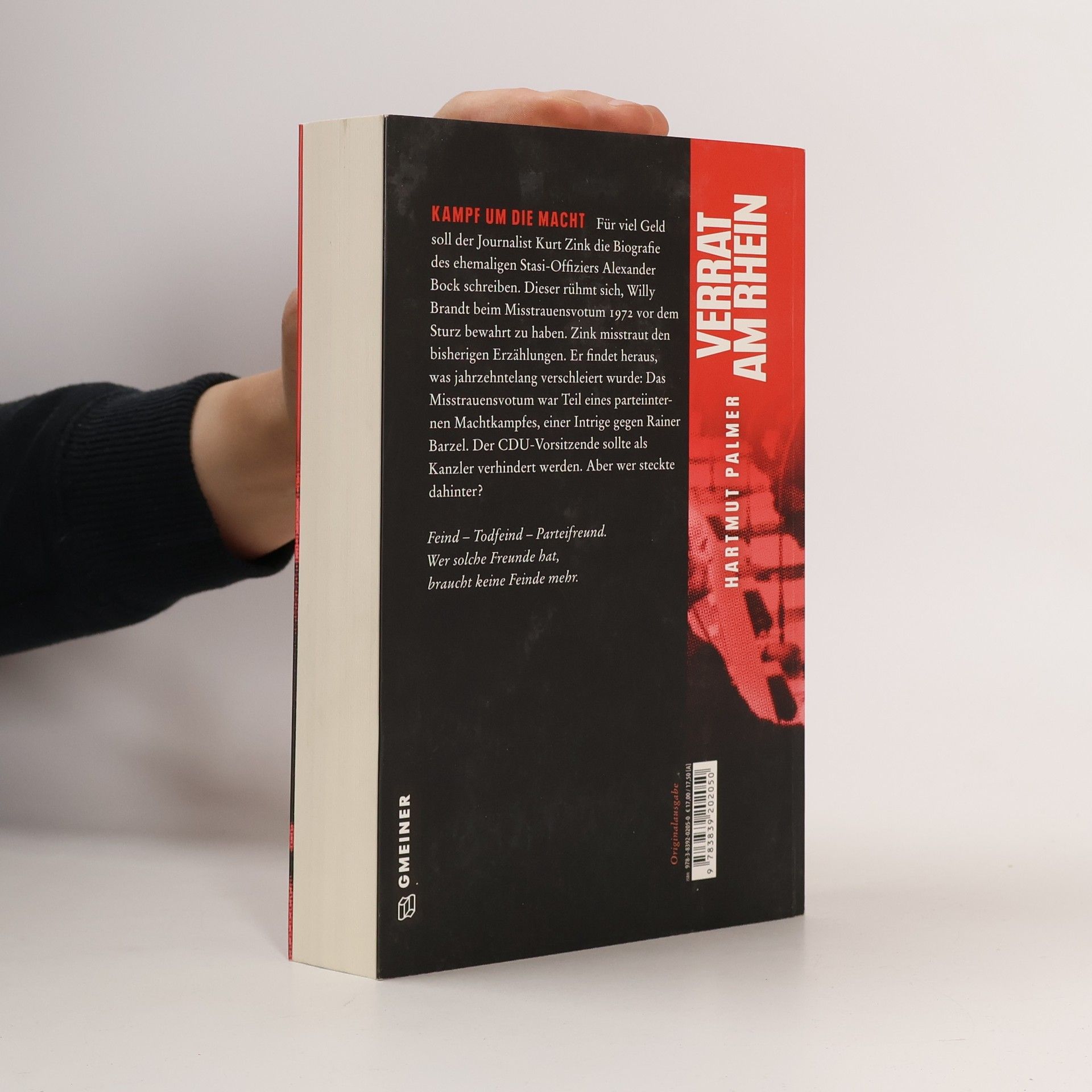 Für viel Geld soll der Journalist Kurt Zink die Biografie des ehemaligen Stasi-Offiziers Alexander Bock schreiben. Dieser rühmt sich, Willy Brandt beim Misstrauensvotum 1972 vor dem Sturz bewahrt zu haben. Zink misstraut den bisherigen Erzählungen. Er findet heraus, was jahrzehntelang verschleiert wurde: Das Misstrauensvotum war Teil eines parteiinternen Machtkampfes, einer Intrige gegen Rainer Barzel. Der CDU-Vorsitzende sollte als Kanzler verhindert werden. Aber wer steckte dahinter?