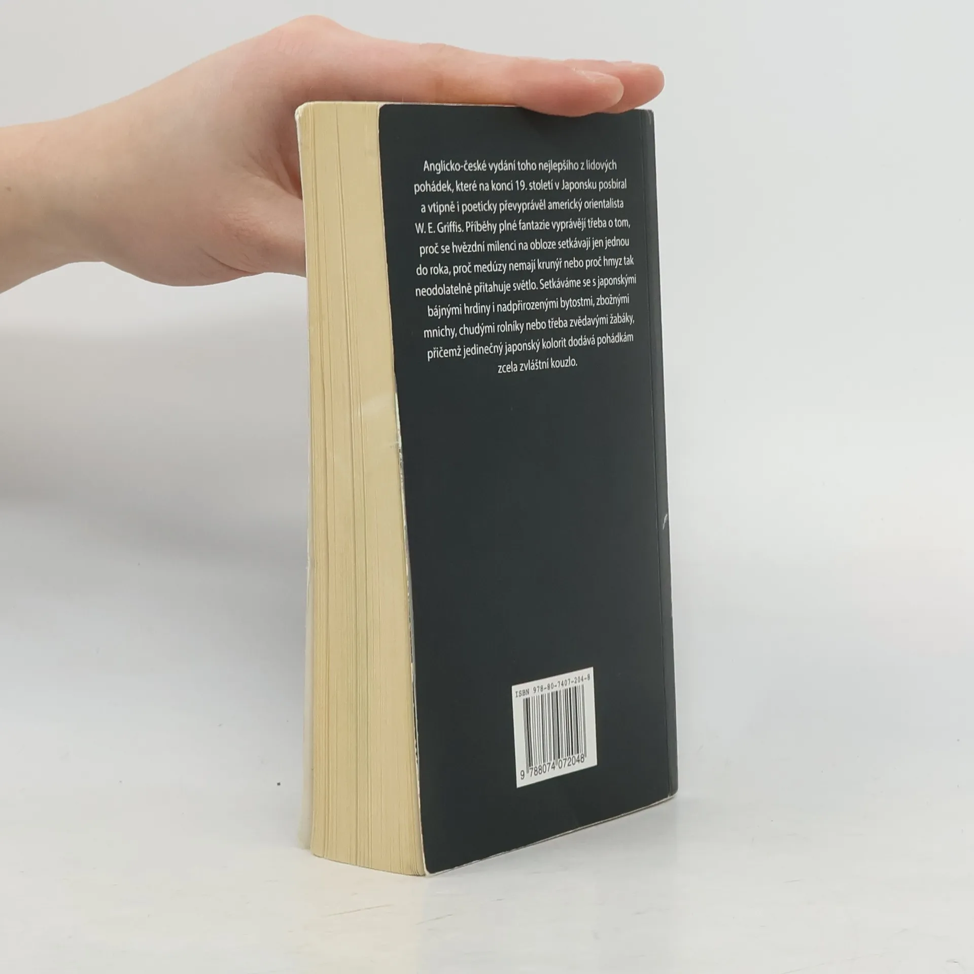 Anglicko-české vydání toho nejlepšího z lidových pohádek, které na konci 19. století v Japonsku posbíral a vtipně i poeticky převyprávěl americký orientalista W. E. Griffis. Příběhy plné fantazie vyprávějí třeba o tom, proč se hvězdní milenci na obloze setkávají jen jednou do roka, proč medúzy nemají krunýř nebo proč hmyz tak neodolatelně přitahuje světlo. Setkáváme se s japonskými bájnými hrdiny i nadpřirozenými bytostmi, zbožnými mnichy, chudými rolníky nebo třeba zvědavými žabáky, přičemž jedinečný japonský kolorit dodává pohádkám zcela zvláštní kouzlo.