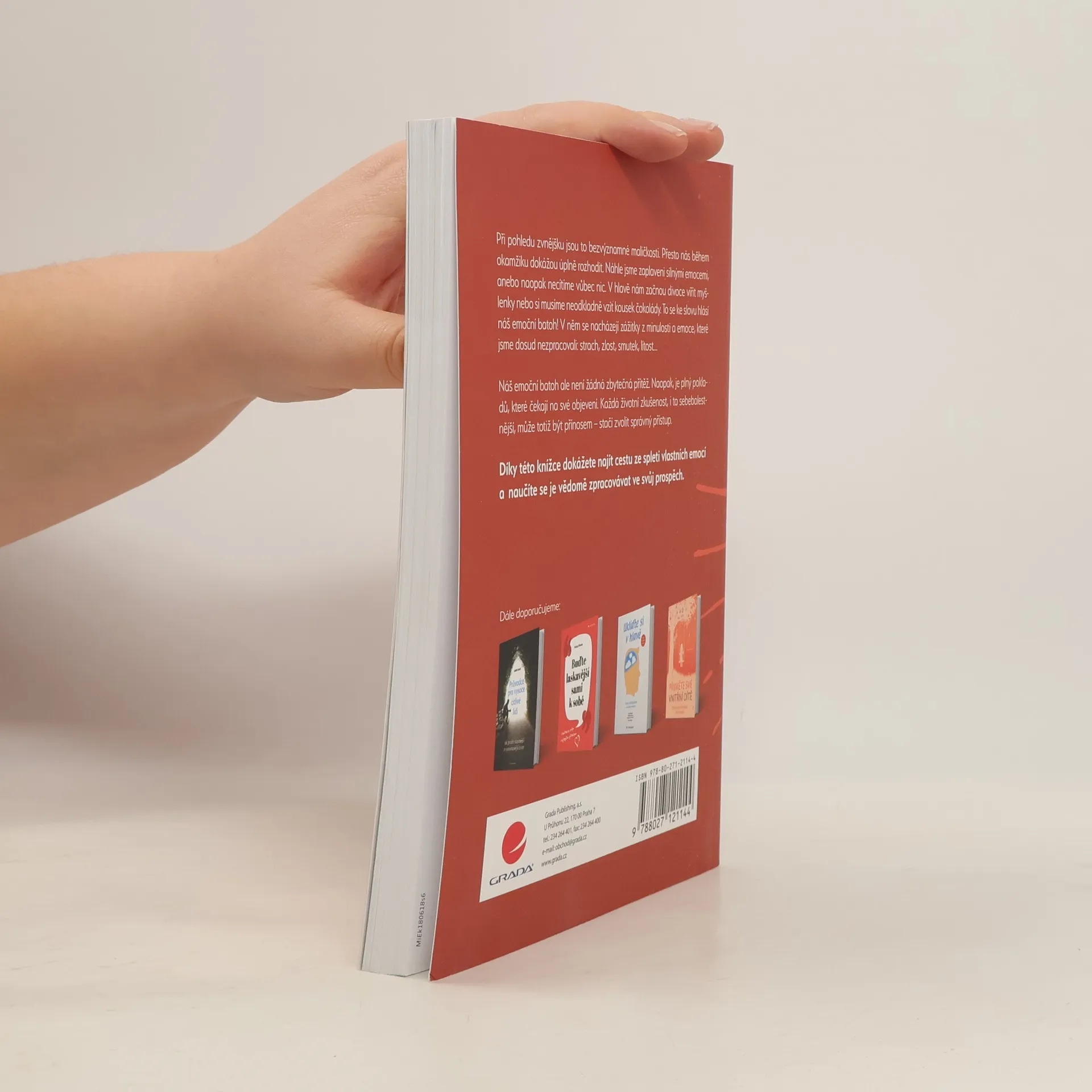 Při pohledu zevnějšku jsou to bezvýznamné maličkosti. Přesto nás během okamžiku dokážou úplně rozhodit. Náhle jsme zaplaveni silnými emocemi – anebo naopak necítíme vůbec nic. V hlavě nám začnou divoce vířit myšlenky, nebo si musíme neodkladně vzít kousek čokolády. To se ke slovu hlásí náš emoční batoh! V něm se nacházejí zážitky z minulosti a emoce, které jsme dosud nezpracovali: strach, zlost, smutek, lítost… Náš emoční batoh ale není žádná zbytečná přítěž. Naopak, je plný pokladů, které čekají na své objevení. Každá životní zkušenost, i ta sebebolestnější, může totiž být přínosem – stačí zvolit správný přístup. Díky této knížce dokážete najít cestu ze spleti vlastních emocí a naučíte se je vědomě zpracovávat ve svůj prospěch.