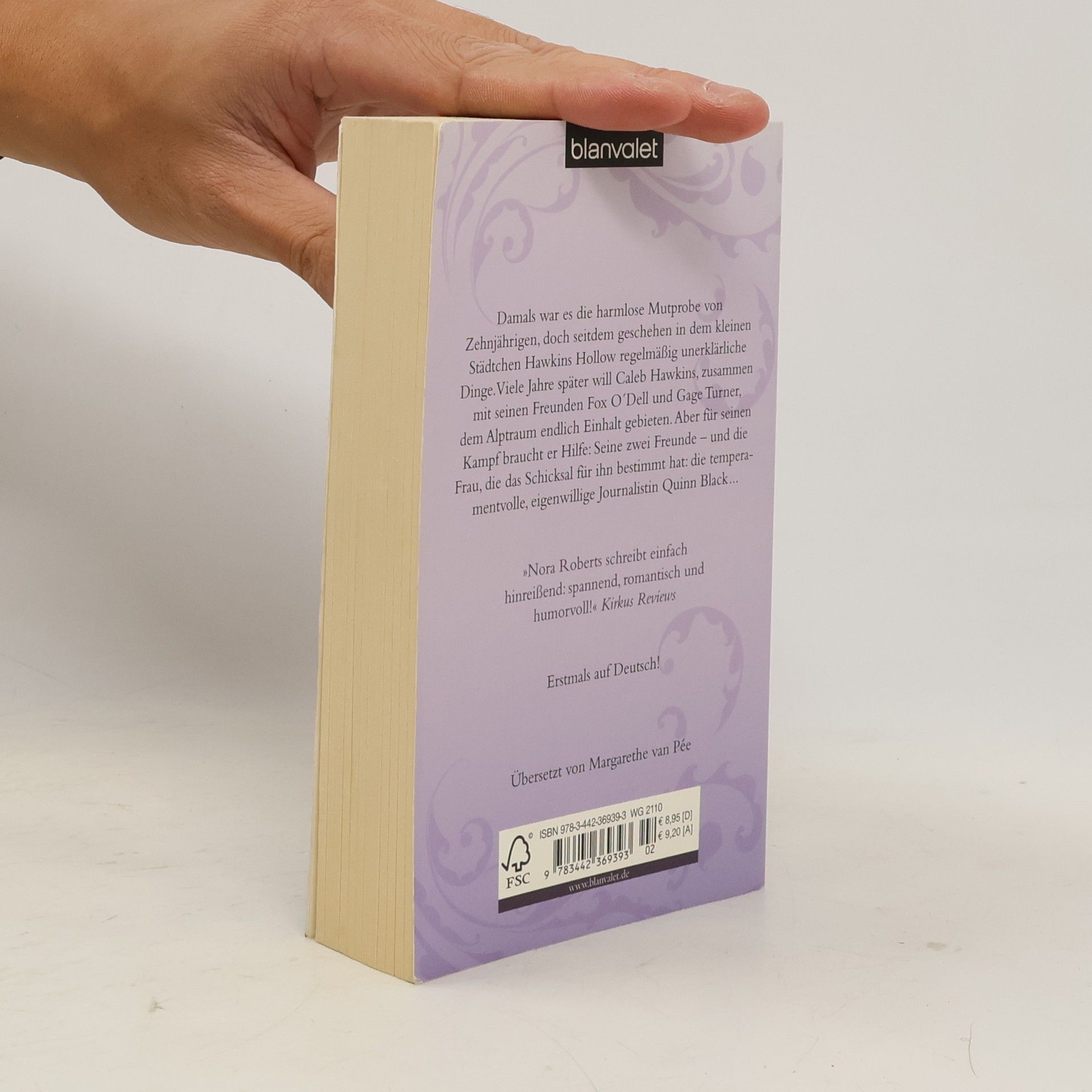 A touch of romance …by Nora Roberts Ein sieben Jahre alter Fluch, drei Freunde, eine große Liebe … Seit Caleb Hawkins, zusammen mit seinen Freunden Fox O´Dell und Gage Turner als damals Zehnjährige eine Mutprobe am Pagan Stone machte, geschehen in dem kleinen Städtchen Hawkins Hollow in Maryland alle sieben Jahre unerklärliche Dinge. Mit jedem Mal wird es schlimmer und daher beschließt Caleb, dem Alptraum Einhalt zu gebieten. Aber er braucht Hilfe: seine zwei Freunde. Und die Kraft der Frau, die er liebt: die Journalistin Quinn Black .