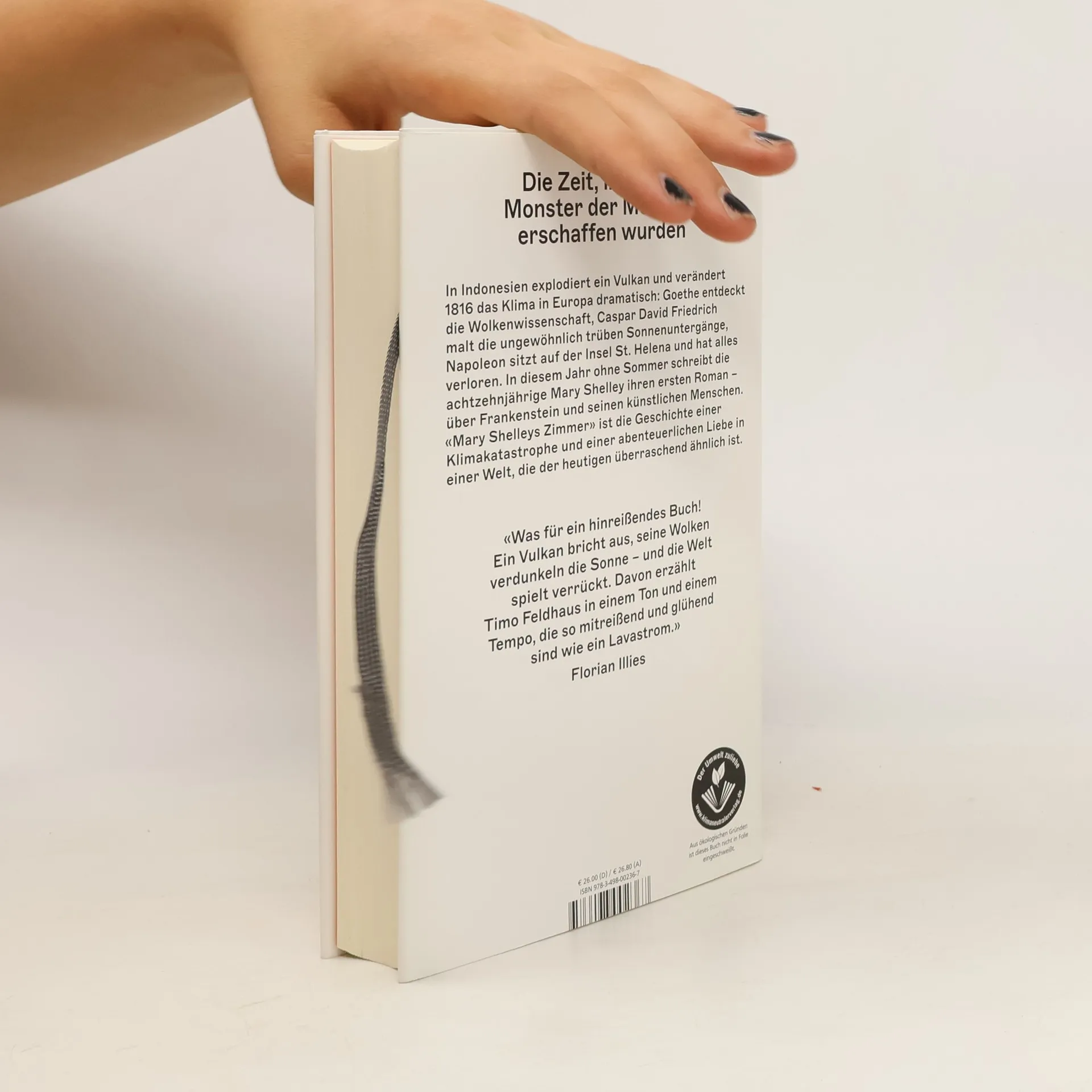 1815 explodiert auf einer indonesischen Insel der Tambora. Es ist der heftigste Vulkanausbruch der Neuzeit und bewirkt enorme Klimaveränderungen. Kalt und dunkel wird es, auch in Europa kommt es zu einem Jahr ohne Sommer. Timo Feldhaus folgt der riesigen Schwefelwolke, die die Welt verdüstert, und beobachtet, was unter ihr geschieht: Goethe entdeckt die Wolkenwissenschaft und wird nie wieder in den Urlaub fahren. Caspar David Friedrich malt giftgelbe Sonnenuntergänge, Napoleon sitzt einsam auf der Insel St. Helena und hat alles verloren. Ein Mädchen sieht ihre Familie verhungern und irrt durch ein Deutschland, in dem die nationale Idee aufkeimt. In Genf kommt es zu einer künstlerischen Eruption: Die 18-jährige Mary Shelley, gerade mit ihrer Liebe aus London geflohen, versteckt sich vor dem Frost und den Unwettern bei Lord Byron, dem ersten Rockstardichter. Hier kommt der stillen, hochtalentierten Frau mit den verrückten Freunden und berühmten Eltern die Idee für ihren ersten Roman: die Geschichte von Frankenstein und seinem Monster, die erste Science Fiction. Timo Feldhaus beschreibt einen Himmel und eine Welt im Umbruch – die der heutigen überraschend ähnlich ist. Es ist eine abenteuerliche Liebesgeschichte inmitten einer Klimakatastrophe. Und genau so passiert.