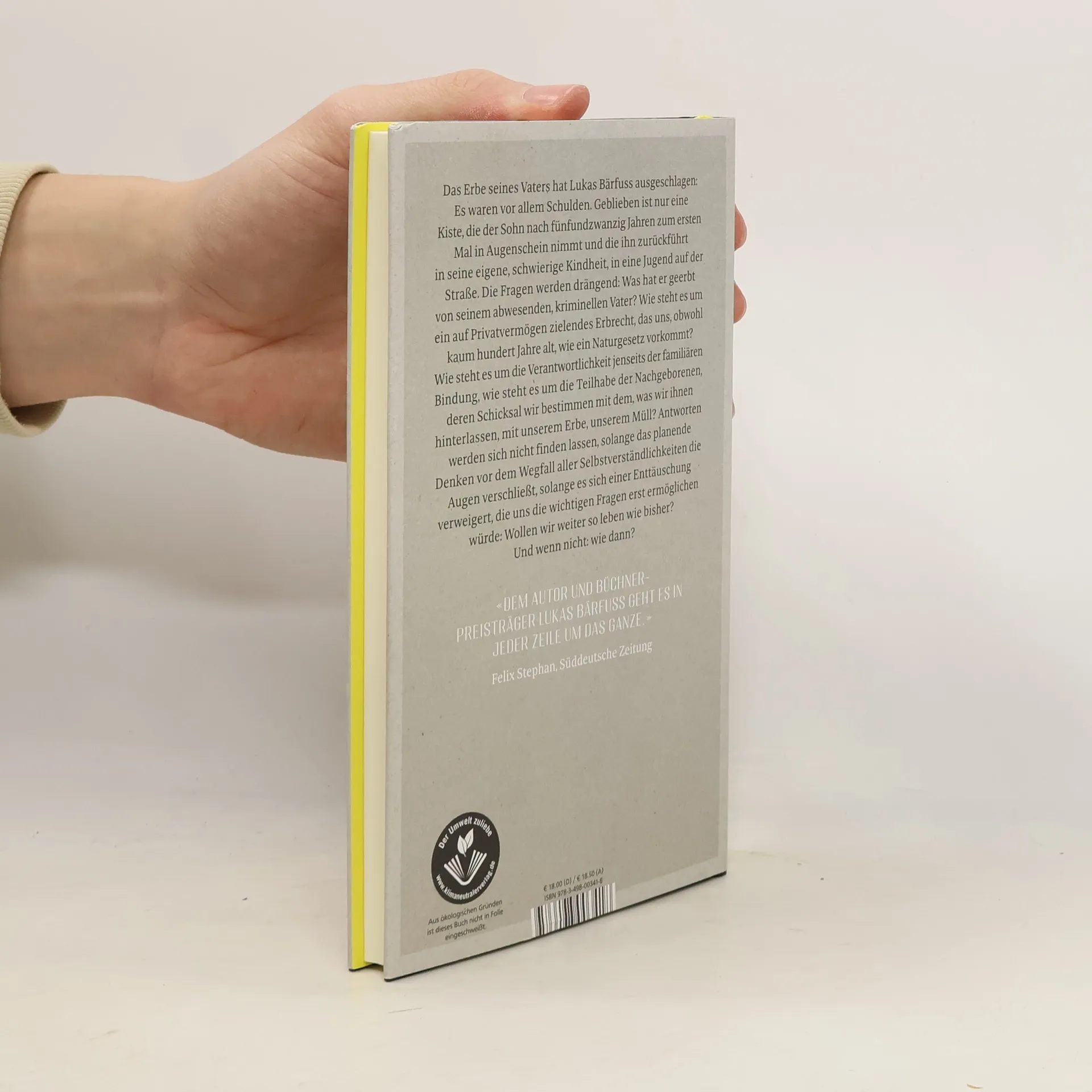 Ein Gedenken an den verstorbenen Vater, ein Nachdenken darüber, was erben heißt, ein kämpferischer Aufruf, aus der Falle des alternativlosen Denkens und Handelns auszubrechen. Das Erbe seines Vaters hat Lukas Bärfuss ausgeschlagen: Es waren vor allem Schulden. Geblieben ist nur eine Kiste, die der Sohn nach fünfundzwanzig Jahren zum ersten Mal in Augenschein nimmt und die ihn zurückführt in seine eigene, schwierige Kindheit, in eine Jugend auf der Straße. Die Fragen werden drängend: Was hat er geerbt von seinem abwesenden, kriminellen Vater? Wie steht es um ein auf Privatvermögen zielendes Erbrecht, das uns, obwohl kaum hundert Jahre alt, wie ein Naturgesetz vorkommt? Wie steht es um die Verantwortlichkeit jenseits der familiären Bindung, wie steht es um die Teilhabe der Nachgeborenen, deren Schicksal wir bestimmen mit dem, was wir ihnen hinterlassen, mit unserem Erbe, unserem Müll? Antworten werden sich nicht finden lassen, solange das planende Denken vor dem Wegfall aller Selbstverständlichkeiten die Augen verschließt, solange es sich einer Enttäuschung verweigert, die uns die wichtigen Fragen erst ermöglichen würde: Wollen wir weiter so leben wie bisher? Und wenn nicht: wie dann?