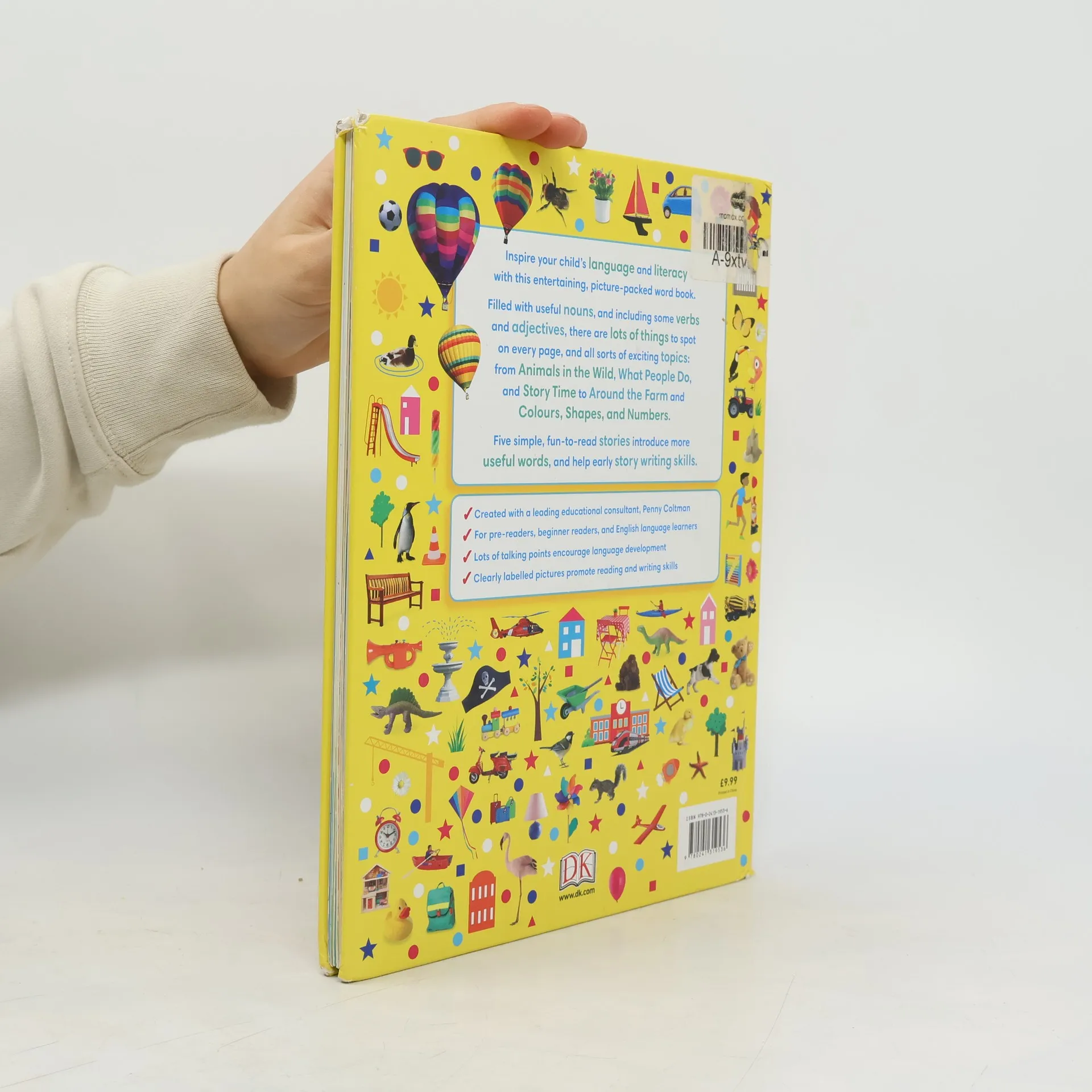 This picture word book of 1000 first words is designed to expand young children's vocabulary and enhance their early reading and writing skills. Each page is filled with engaging images accompanied by word labels and simple text that encourages exploration. Topics include Me and My Body, My Family and Friends, Animals in the Wild, and more. Additionally, there are five "story style" pages that inspire storytelling, such as a narrative about a child's typical day and a playful dog searching for its ball. Each picture is clearly labeled to promote picture-and-word association, aiding early reading development. The book also features questions that encourage children to find items on the page, stimulating thinking, conversation, and early creative writing. The carefully selected words, developed with educational consultant Penny Coltman, include useful nouns, interesting adjectives, and common verbs. Young readers will be captivated by the real-world photos, imaginative illustrations, and valuable vocabulary. This engaging and educational resource is essential for parents looking to foster their child's language and literacy skills.