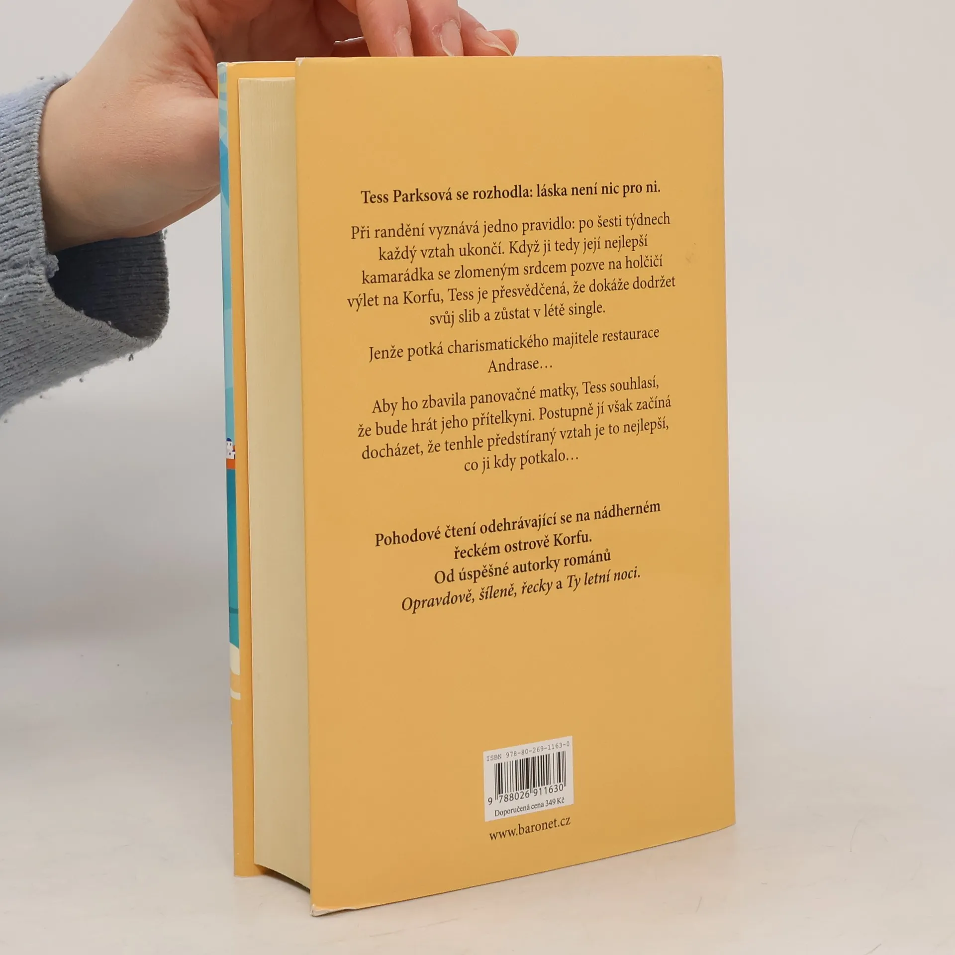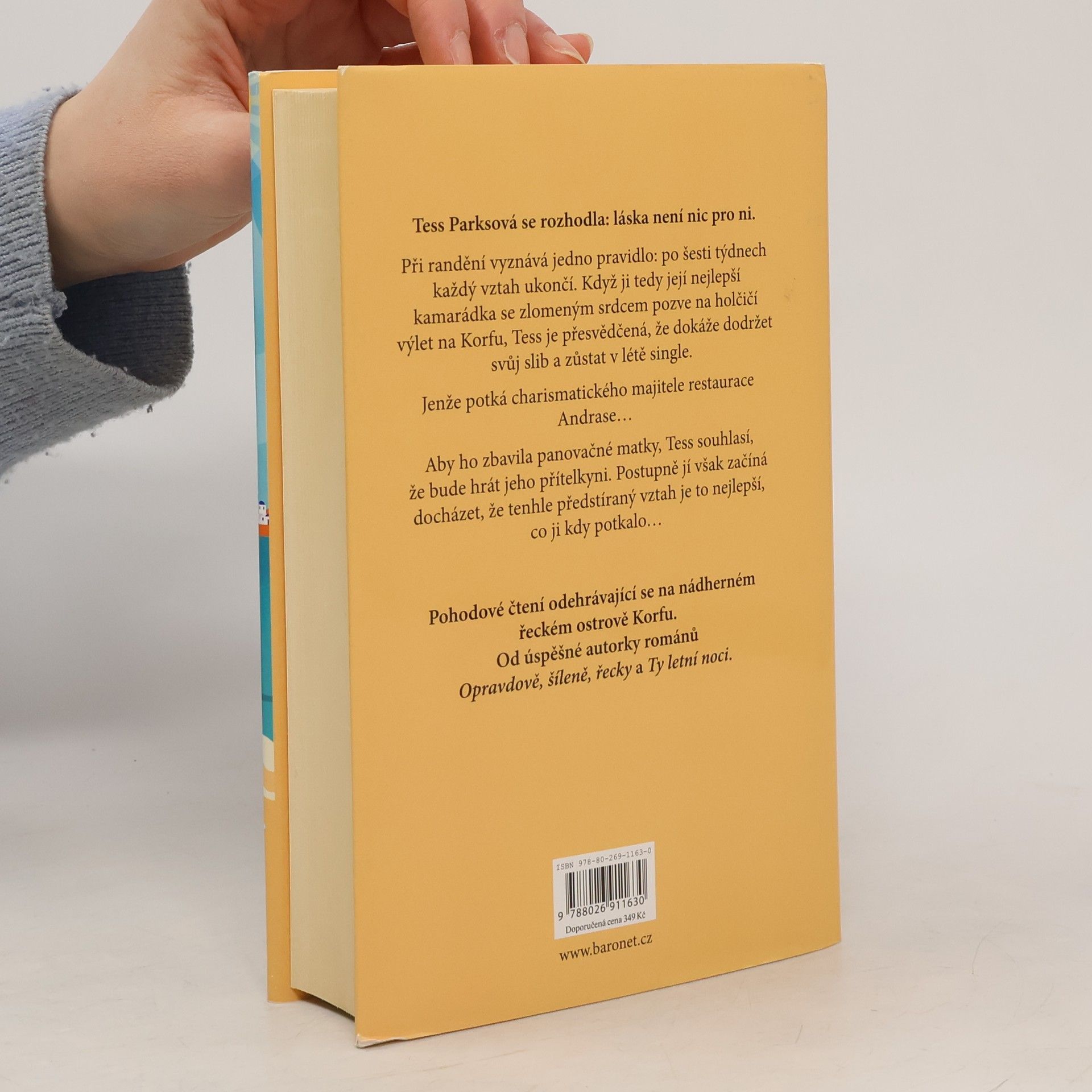 Tess Parksová se rozhodla: láska není nic pro ni. Při randění vyznává jedno pravidlo: po šesti týdnech každý vztah ukončí. Když ji tedy její nejlepší kamarádka se zlomeným srdcem pozve na holčičí výlet na Korfu, Tess je přesvědčená, že dokáže svou zásadu dodržet a zůstat v létě single. Jenže potká charismatického majitele restaurace Andrase… Tess, aby ho zbavila panovačné matky, souhlasí, že bude hrát jeho přítelkyni. Postupně jí však začíná docházet, že tenhle předstíraný vztah je to nejlepší, co ji kdy potkalo…