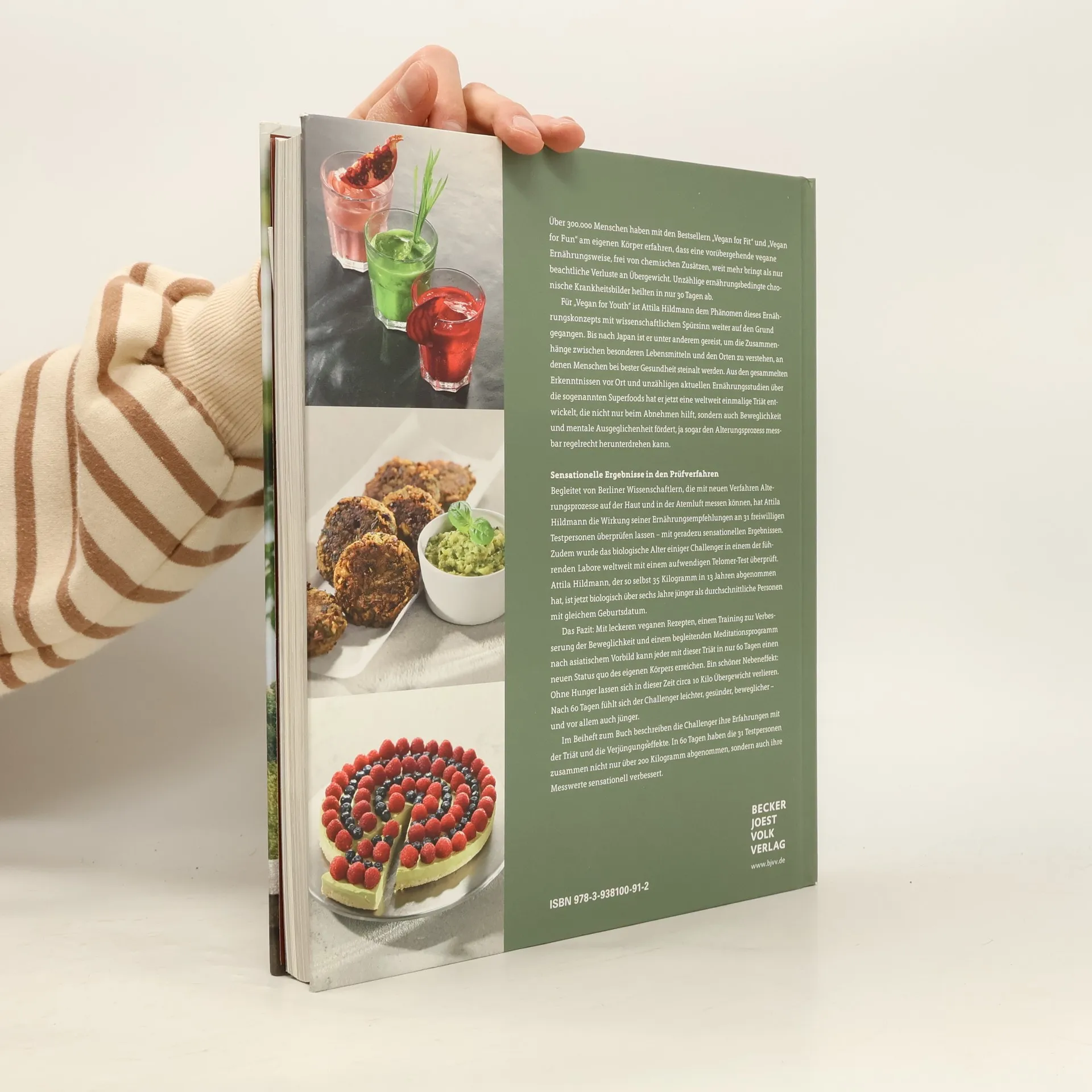 Über 100.000 Menschen haben mit den Bestsellern Vegan for Fit und Vegan for Fun erfahren, dass eine vorübergehende vegane Ernährung ohne chemische Zusätze nicht nur zu Gewichtsverlust führt, sondern auch ernährungsbedingte chronische Krankheiten in nur 30 Tagen heilen kann. In Vegan for Youth hat Attila Hildmann das Phänomen dieser Ernährung mit wissenschaftlichem Ansatz weiter untersucht. Bereits 2015 setzte er die Telomer-Messung ein, eine Methode zur Entschlüsselung des Alterns, die von Nobelpreisträgerin Elizabeth Blackburn entwickelt wurde. Zudem reiste er nach Japan, um die Zusammenhänge zwischen speziellen Lebensmitteln und der Gesundheit von Menschen, die ein hohes Alter erreichen, zu erforschen. Aus seinen Erkenntnissen über Superfoods entwickelte er eine einzigartige Triät, die Alterungsprozesse verlangsamen kann. Gemeinsam mit Wissenschaftlern der Charité in Berlin überprüfte er die Wirkung seiner Ernährungsempfehlungen. Das Ergebnis: Mit schmackhaften veganen Rezepten, einem Beweglichkeitstraining und einem asiatisch inspirierten Meditationsprogramm kann jeder in nur 60 Tagen einen neuen Körperstatus erreichen. Ein positiver Nebeneffekt: In dieser Zeit können bis zu 10 Kilo Übergewicht verloren werden. Nach 60 Tagen fühlen sich die Teilnehmer leichter, gesünder, beweglicher und jünger.