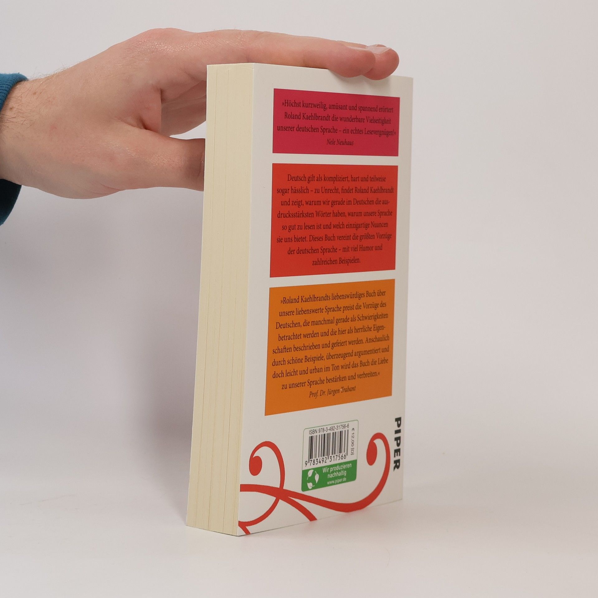 zahlreichen Beispielen. »Höchst kurzweilig, amüsant und spannend erörtert Roland Kaehlbrandt die wunderbare Vielseitigkeit unserer deutschen Sprache – ein echtes Lesevergnügen!« Nele Neuhaus »Roland Kaehlbrandts liebenswürdiges Buch über unsere liebenswerte Sprache preist die Vorzüge des Deutschen, die manchmal gerade als Schwierigkeiten betrachtet werden und die hier als herrliche Eigenschaften beschrieben und gefeiert werden. Anschaulich durch schöne Beispiele, überzeugend argumentiert und doch leicht und urban im Ton wird das Buch die Liebe zu unserer Sprache bestärken und verbreiten.« Prof. Dr. Jürgen Trabant