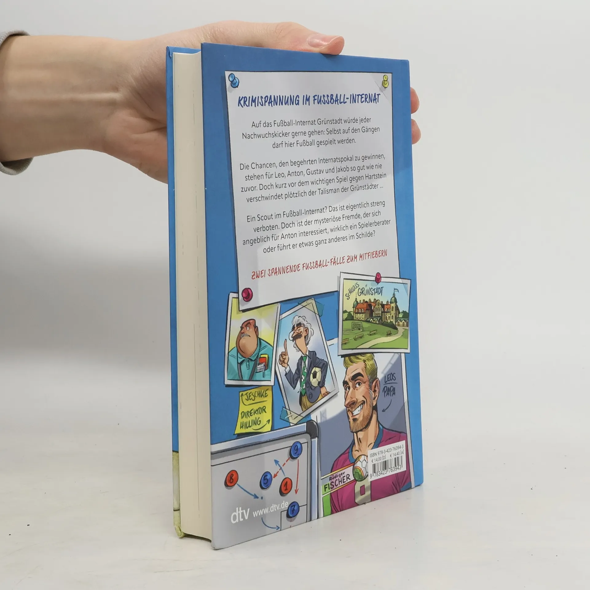 Fußball, Freundschaft, Fallrückzieher Grünstadt – auf dieses Fußballinternat würde jeder angehende Nachwuchskicker gerne gehen. Selbst auf den Gängen wird dort Fußball gespielt, ohne dass jemand schimpft. Die Talentschmiede hat schon so einige Profifußballer ausgebildet. Auch Anton, Gustav und Jakob träumen davon, einmal international zu spielen. Als Leo Fischer, der Sohn eines berühmten Fußballers, neu aufs Internat kommt, sehen sie sich ihrem Traum ein ganzes Stückchen näher. Doch Leo träumt nicht nur vom Fußballspielen, sondern auch von einer Karriere als Sherlock Holmes. Schon stecken die vier in einem aufregenden Abenteuer, das Köpfchen, Zusammenhalt und Ballgefühl erfordert. Zu diesem Buch finden Sie Quizfragen auf antolin.de