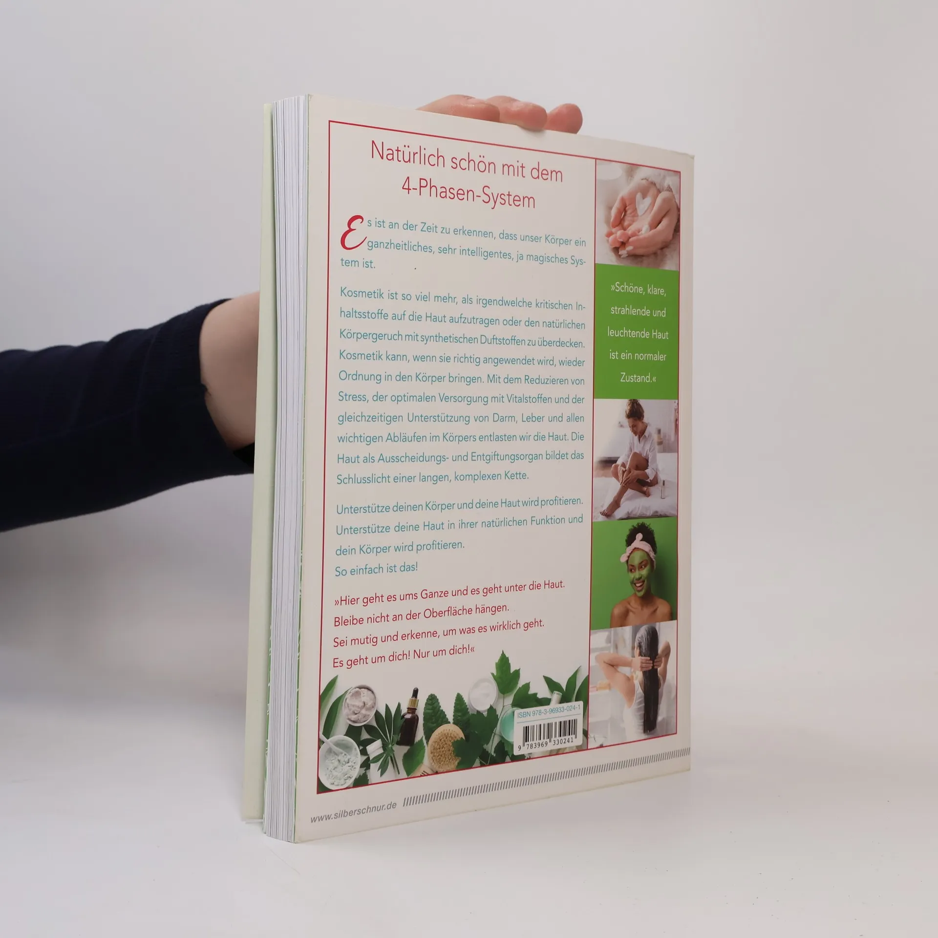 »Schöne, klare, strahlende und leuchtende Haut ist ein normaler Zustand.« Natürlich schön mit dem 4-Phasen-System. Es ist an der Zeit zu erkennen, dass unser Körper ein ganzheitliches, sehr intelligentes, ja magisches System ist. Kosmetik ist so viel mehr, als irgendwelche kritischen Inhaltsstoffe auf die Haut aufzutragen oder den natürlichen Körpergeruch mit synthetischen Duftstoffen zu überdecken. Kosmetik kann, wenn sie richtig angewendet wird, wieder Ordnung in den Körper bringen. Mit dem Reduzieren von Stress, der optimalen Versorgung mit Vitalstoffen und der gleichzeitigen Unterstützung von Darm, Leber und allen wichtigen Abläufen im Körpers entlasten wir die Haut. Die Haut als Ausscheidungs- und Entgiftungsorgan bildet das Schlusslicht einer langen, komplexen Kette. Unterstütze deinen Körper und deine Haut wird profitieren. Unterstütze deine Haut in ihrer natürlichen Funktion und dein Körper wird profitieren. So einfach ist das! »Hier geht es ums Ganze und es geht unter die Haut. Bleibe nicht an der Oberfläche hängen. Sei mutig und erkenne, um was es wirklich geht. Es geht um dich! Nur um dich!«