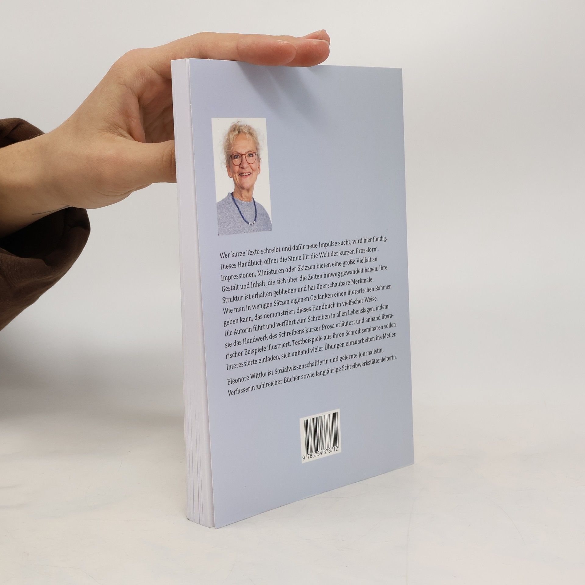 Wer kurze Texte schreibt und dafür neue Impulse sucht, wird hier fündig. Dieses Handbuch öffnet die Sinne für die Welt der kurzen Prosaform. Impressionen, Miniaturen oder Skizzen bieten eine große Vielfalt an Gestalt und Inhalt, die sich über die Zeiten hinweg gewandelt haben. Ihre Struktur ist erhalten geblieben und hat überschaubare Merkmale. Wie man in wenigen Sätzen eigenen Gedanken einen literarischen Rahmen geben kann, das demonstriert dieses Handbuch in vielfacher Weise. Die Autorin führt und verführt zum Schreiben in allen Lebenslagen, indem sie das Handwerk des Schreibens kurzer Prosa erläutert und anhand literarischer Beispiele illustriert. Textbeispiele aus ihren Schreibseminaren sollen Interessierte einladen, sich anhand vieler Übungen einzuarbeiten ins Metier. Eleonore Wittke ist Sozialwissenschaftlerin und gelernte Journalistin, Verfasserin zahlreicher Bücher sowie langjährige Schreibwerkstättenleiterin.