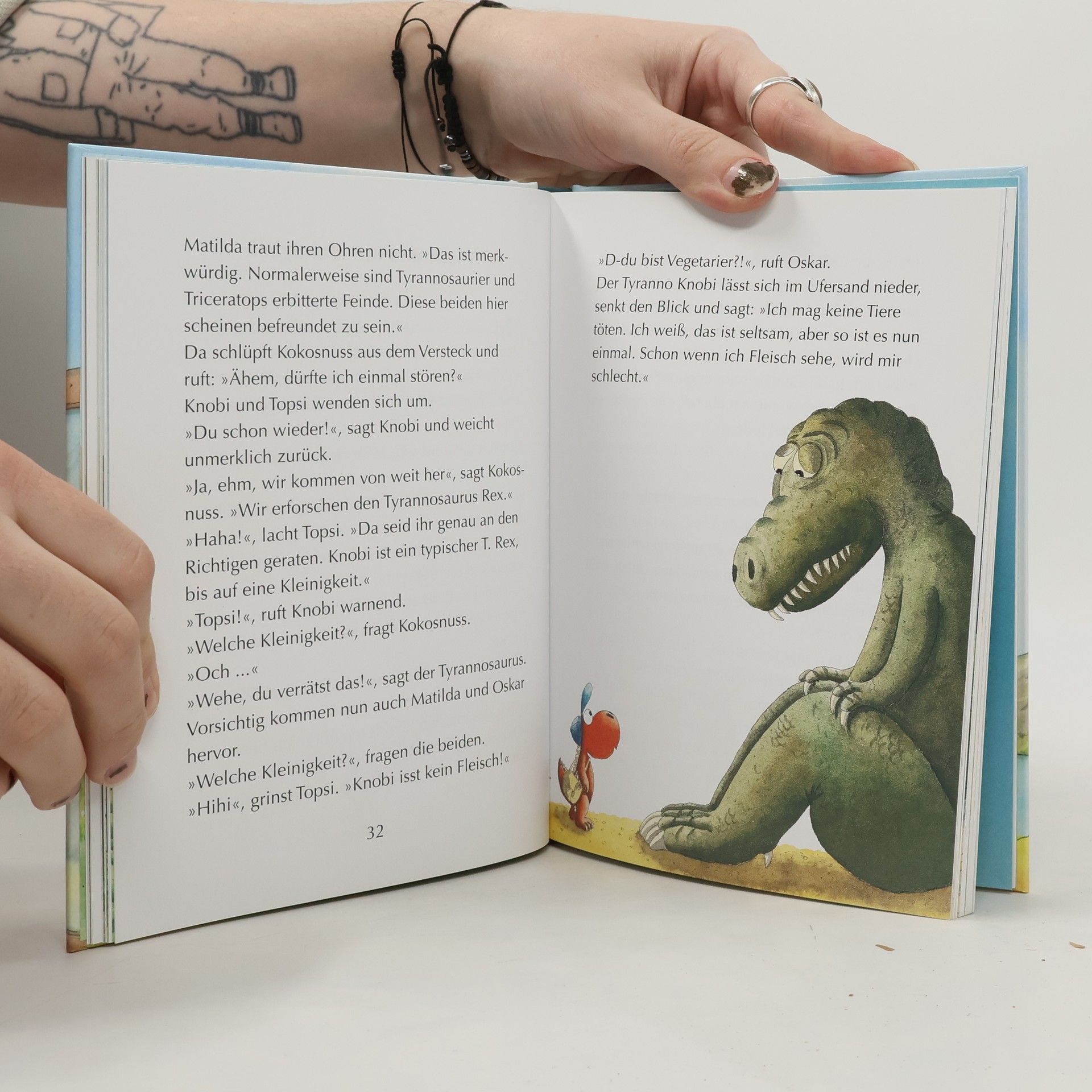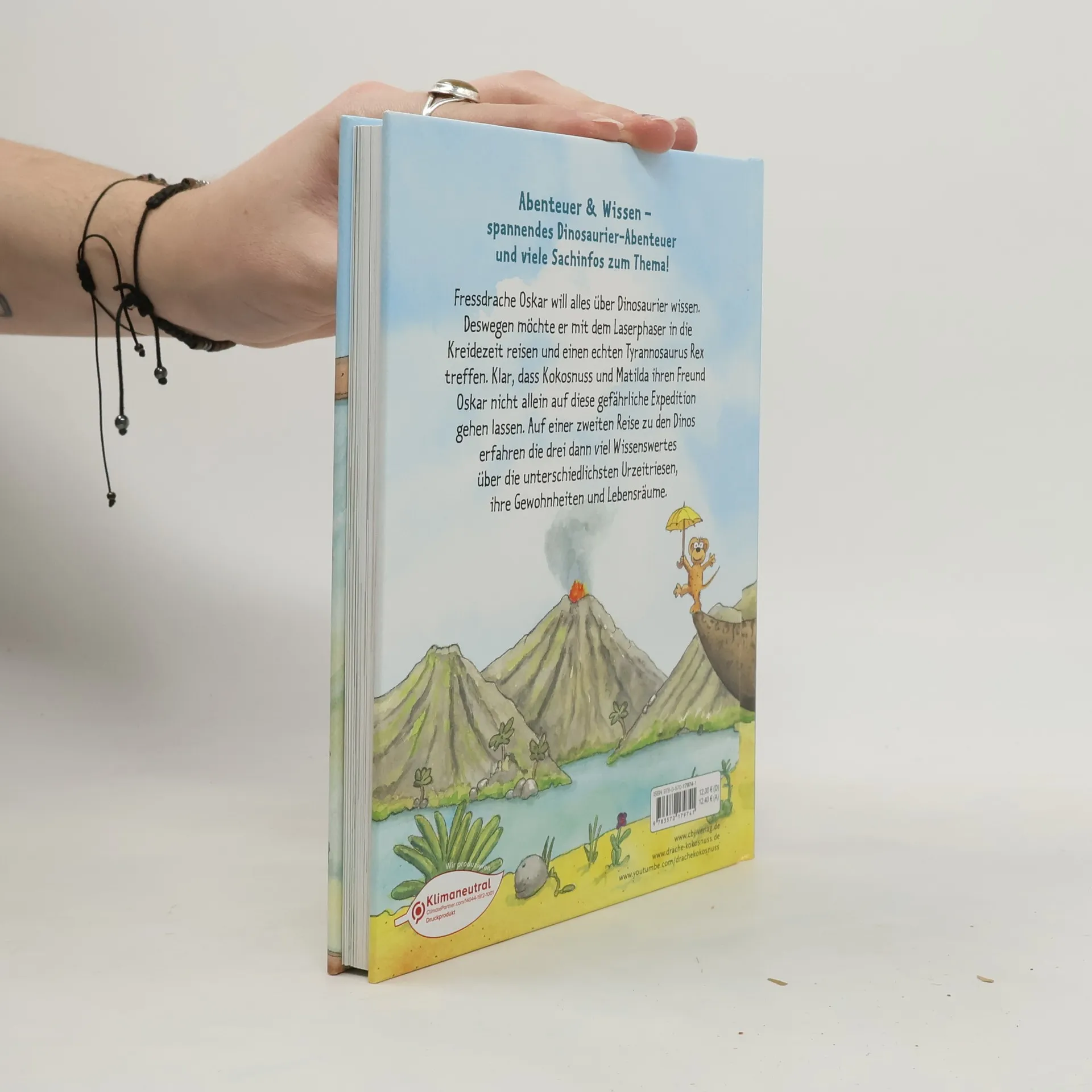 Doppelband mit Abenteuer und Sachwissen zum Thema Dinosaurier für alle Kokosnuss-Fans Ein spannendes Kokosnuss-Abenteuer und viel Sachwissen zum Thema »Dinosaurier« gibt es hier in einem Band! Der Fressdrache Oskar interessiert sich wahnsinnig für die Urzeitriesen. Deswegen will er unbedingt mit dem Laserphaser in die Kreidezeit reisen und einem echten Tyrannosaurus Rex begegnen. Klar, dass Kokosnuss und Matilda ihren Freund nicht allein auf diese gefährliche Expedition gehen lassen. Und alles Wissenswerte, das sie über Dinosaurier erfahren, schreiben sie hier für ihre Fans auf! Der Doppelband enthält die Bände »Der kleine Drache Kokosnuss bei den Dinosauriern« und »Alles klar! Der kleine Drache Kokosnuss erforscht die Dinsaurier« Ausstattung: Mit fbg. Illustrationen