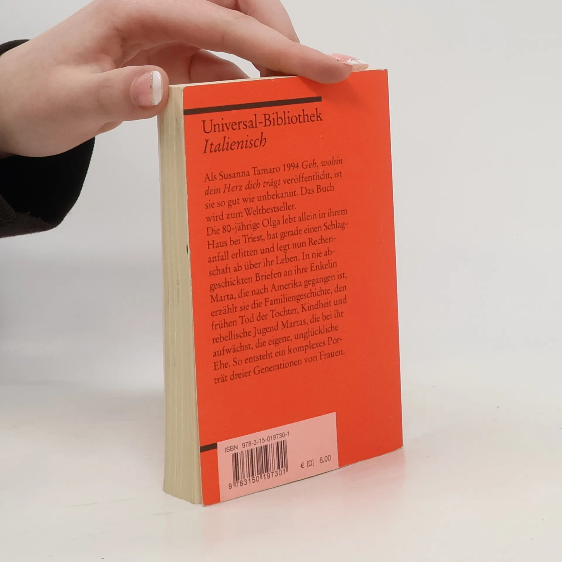Italienische Literatur in Reclams Roter Reihe: das ist der italienische Originaltext – mit Worterklärungen am Fuß jeder Seite, Nachwort und Literaturhinweisen. Als Susanna Tamaro 1994 »Geh, wohin dein Herz dich trägt« veröffentlicht, ist sie so gut wie unbekannt. Das Buch wird zum Weltbestseller. Die 80-jährige Olga lebt allein in ihrem Haus bei Triest, hat gerade einen Schlaganfall erlitten und legt nun Rechenschaft ab über ihr Leben. In nie abgeschickten Briefen an ihre Enkelin Marta, die nach Amerika gegangen ist, erzählt sie die Familiengeschichte, den frühen Tod der Tochter, Kindheit und rebellische Jugend Martas, die bei ihr aufwächst, die eigene, unglückliche Ehe. So entsteht ein komplexes Porträt dreier Generationen von Frauen. Italienische Lektüre: Niveau B2 (GER) Sprachen: Deutsch, Italienisch