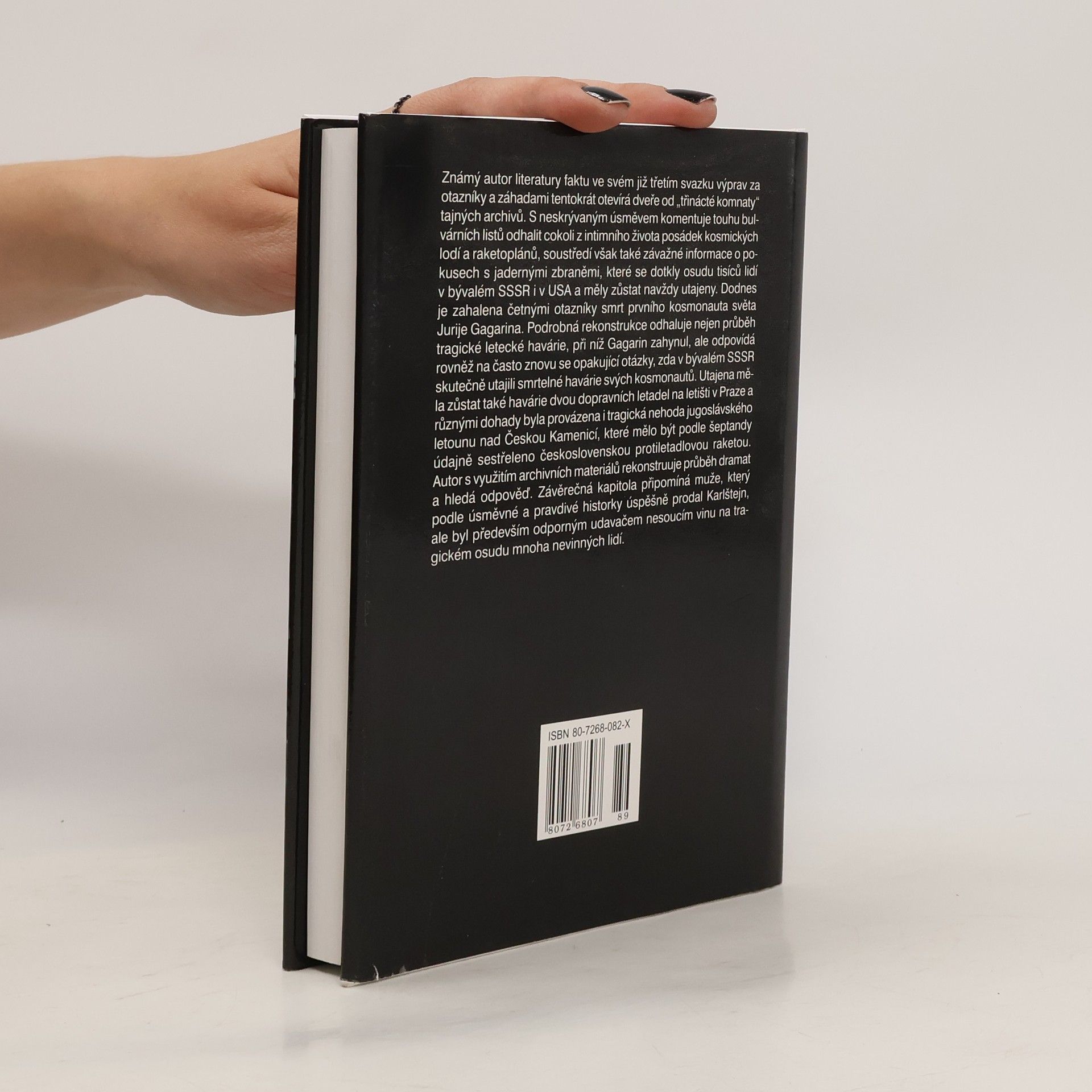 Známý autor literatury faktu ve svém již třetím svazku výprav za otazníky a záhadami tentokrát otevírá dveře od "třinácté komnaty" tajných archivů. S neskrývaným úsměvem komentuje touhu bulvárních listů odhalit cokoli z intimního života posádek kosmických lodí a raketoplánů, soustředí však také závažné informace o pokusech s jadernými zbraněmi, které se dotkly osudu tisíců lidí v bývalém SSSR i v USA a měly zůstat navždy utajeny. Dodnes je zahalena četnými otazníky smrt prvního kosmonauta světa Jurije Gagarina. Podrobná rekonstrukce odhaluje nejen průběh tragické letecké havárie, při níž Gagarin zahynul, ale odpovídá rovněž na často znovu se opakující otázky, zda v bývalém SSSR skutečně utajili smrtelné havárie kosmonautů. Utajená měla zůstat také havárie dvou dopravníchletadel na leišti v Praze a různými dohady byla provázena i tragická nehoda jugoslávského letounu nad Českou Kamenicí, které mělo být podle šeptandy údajně sestřeleno československou protiletadlovou raketou. Autor s využitím archivních materiálů hledá odpověď. Závěrečná kapitola připomíná muže, který podle úsměvné a pravdivé historky úspěšně prodal Karlštejn, ale byl především odporným udavačem nesoucím vinu na tragickém osudu mnoha nevinných lidí.
