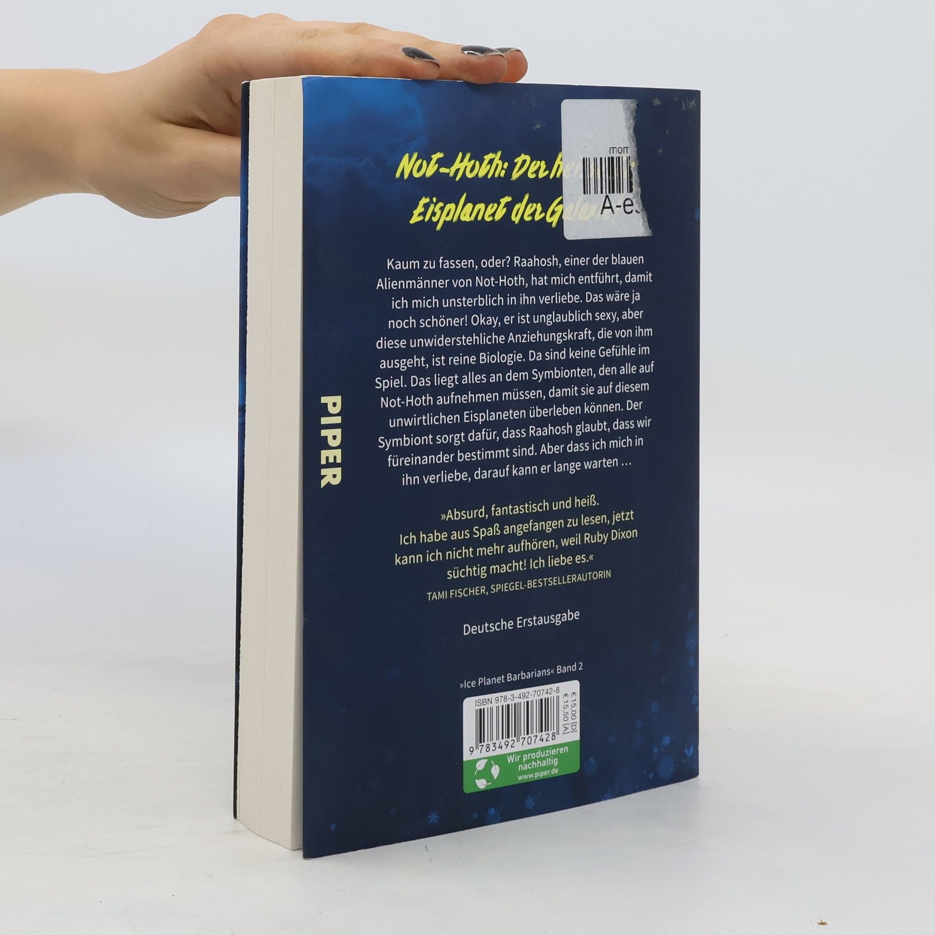 *** Die aufregende neue Spicy Romance-Reihe aus den USA: Die Ice Planet Barbarians bringen alle Herzen zum Schmelzen! *** Kaum zu fassen, oder? Raahosh, einer der blauen Alienmänner von Not-Hoth, hat mich entführt, damit ich mich unsterblich in ihn verliebe. Das wäre ja noch schöner! Okay, er ist unglaublich sexy, aber diese unwiderstehliche Anziehungskraft, die von ihm ausgeht, ist reine Biologie. Da sind keine Gefühle im Spiel. Das liegt alles an dem Symbionten, den alle auf Not-Hoth aufnehmen müssen, damit sie auf diesem unwirtlichen Eisplaneten überleben können. Der Symbiont sorgt dafür, dass Raahosh glaubt, dass wir füreinander bestimmt sind. Aber dass ich mich ihn verliebe, darauf kann er lange warten … Dies ist der zweite Band der Ice Planet Barbarians. Weitere Bände der Reihe: Ice Planet Barbarians – Georgie und Vektal (Band 1) Ice Planet Barbarians – Liz und Raahosh (Band 2) Ice Planet Barbarians – Kira und Aehako (Band 3) Ice Planet Barbarians – Harlow und Rukh (Band 4) Ice Planet Barbarians – Tiffany und Salukh (Band 5)