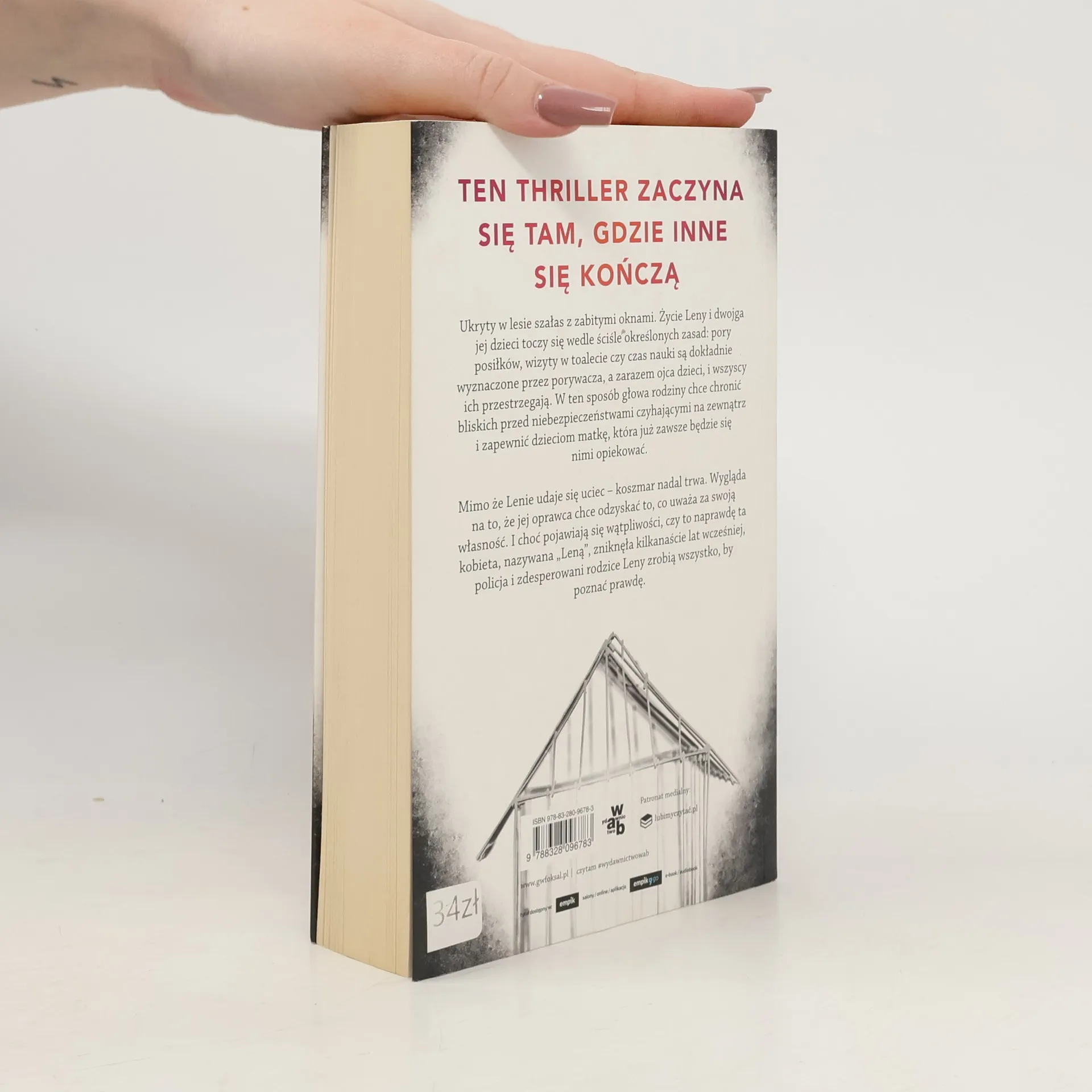 Ten thriller zaczyna się tam, gdzie inne się kończą Ukryty w lesie szałas z zabitymi oknami. Życie Leny i jej dwojga dzieci toczy się wedle ściśle określonych zasad: pory posiłków, wizyty w toalecie czy czas nauki są dokładnie wyznaczone przez porywacza, a zarazem ojca dzieci, i wszyscy ich przestrzegają. W ten sposób ojciec porywacz chce chronić rodzinę przed niebezpieczeństwami czyhającymi na zewnątrz i zapewnić dzieciom matkę, która już zawsze będzie się nimi opiekować. Pewnego dnia Lenie udaje się uciec – koszmar jednak trwa. Wygląda na to, że jej oprawca chce odzyskać to, co uważa za swoją własność. Mimo że pojawiają się wątpliwości, czy to naprawdę ta kobieta, nazywana „Leną”, zniknęła kilkanaście lat wcześniej, policja i zdesperowani rodzice Leny robią wszystko, by połączyć te pozornie niepasujące do siebie fragmenty układanki. Połączenie kryminału, thrillera i historii rodzinnej. Zwodniczo niepokojący debiut. Książka, która jednocześnie fascynuje i zmusza do zastanowienia. - New York Times Klaustrofobiczna, przerażająca i wręcz zniewalająca. - Daily Mail Hausmann sprawia, że czytelnik troszczy się o postaci, nawet jeśli nie może przestać snuć domysłów na ich temat. - Sunday Express