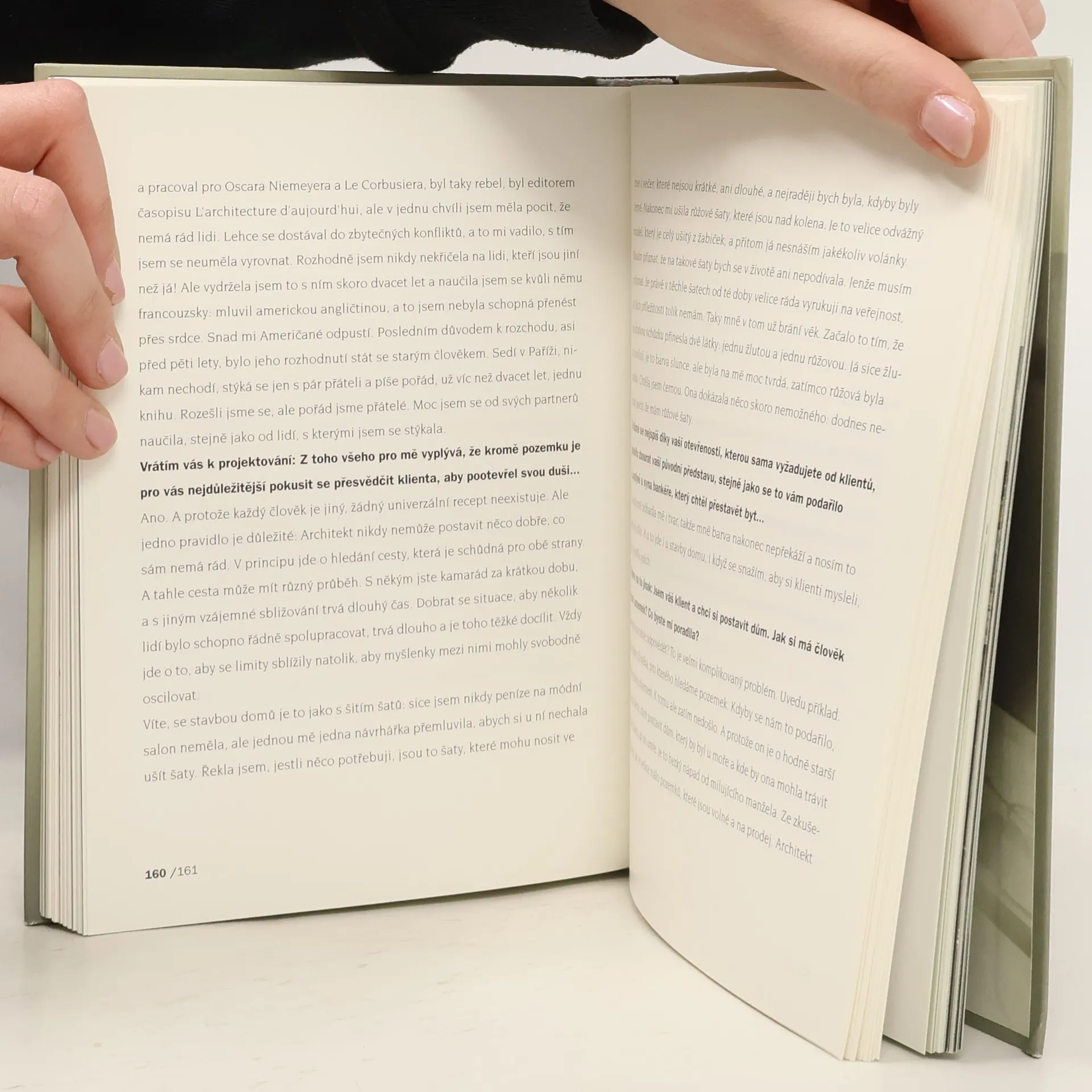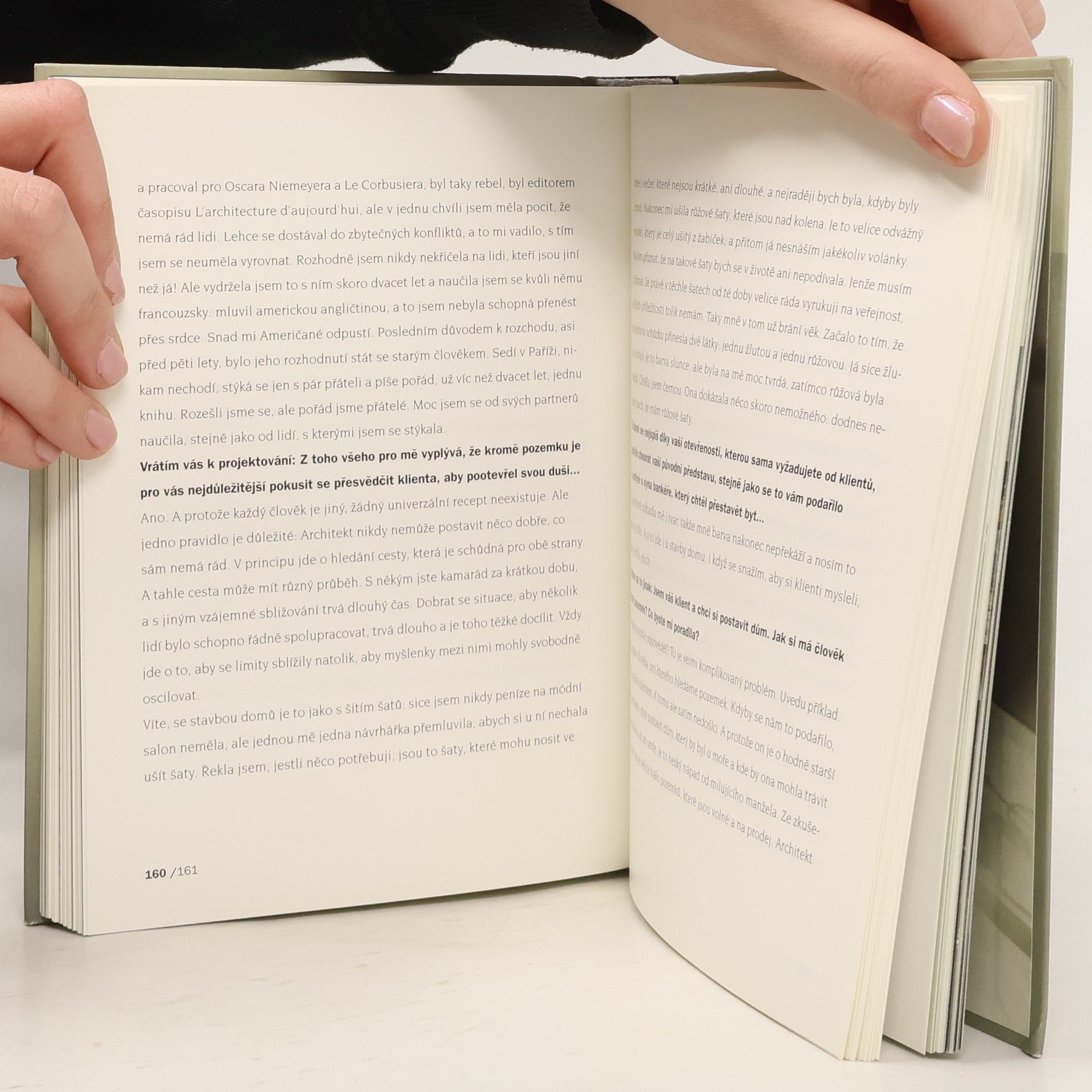 Tato kniha představuje význačnou současnou česko-anglickou architektku a filozofku prostoru jako člověka, který pochází z typického středoevropského milieu: nepříznivě ji ovlivnila jak německá okupace, tak komunistický puč a nakonec sovětská okupace v roce 1968, kvůli které odešla do Velké Británie. V rozhovorech s novinářem a spisovatelem Karlem Hvížďalou Eva Jiřičná probírá jednotlivé zásadnější realizované stavby, projektuje s ním jeho fiktivní dům, a tím zpřístupňuje čtenáři způsob svého sofistikovaného vnímání prostoru. Zásadní důraz klade na dialog se zadavatelem, je toho názoru, že dobrý projekt může vyplynout jen ze vzájemného sblížení architekta s klientem. Kniha je určena všem zájemcům o moderní architekturu včetně profesionálů a lidí, kteří by si chtěli pořídit byt nebo postavit dům. Grafické úpravy revidovaného rozšířeného vydání se ujala Clara Istlerová, text doprovázejí fotografie Jana Malého ml.