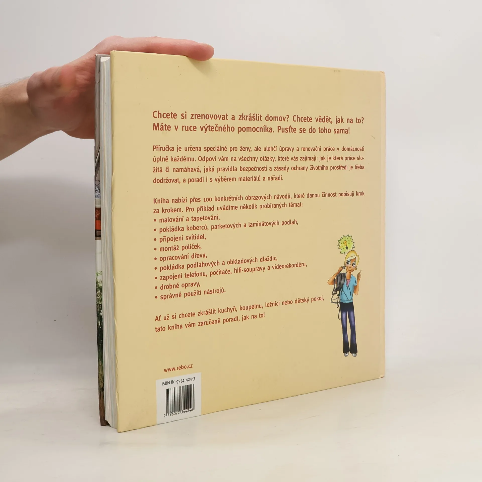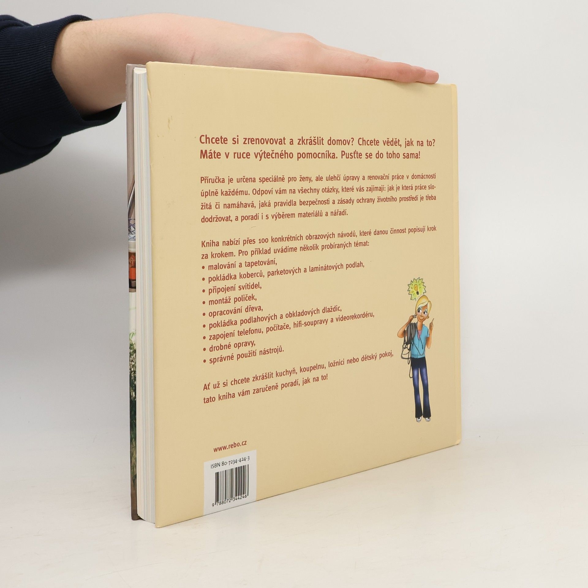 Příručka je určena ženám, přináší podrobné návody jak postupovat při zařizování bytu a drobných opravách (malování, pokládka podlahy, montáž poliček...).