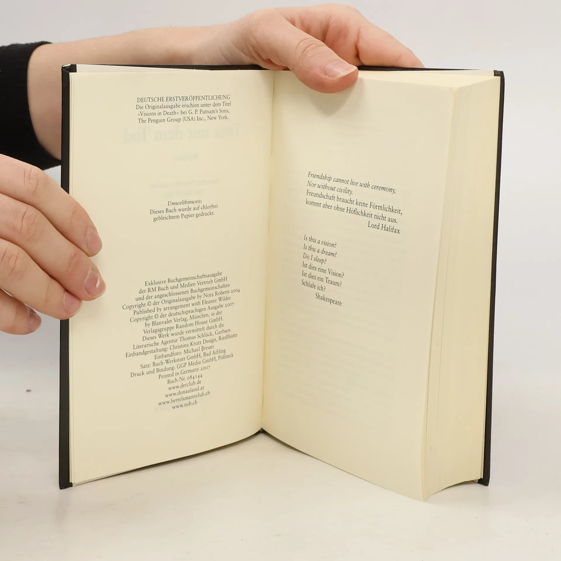 Die andere Seite der Nora Roberts: fesselnd, mysteriös und leidenschaftlich Eine junge Frau wird im Central Park ermordet. Ein schockierender Anblick – auch für die erfahrene Polizistin Eve Dallas. Denn der Mörder hat seinem Opfer die Augen entfernt. Und es werden noch mehr Leichen mit diesem makabren Zeichen entdeckt. Eve Dallas steht vor einem Rätsel, bis ausgerechnet eine Hellseherin Hinweise liefert. Mithilfe ihres Ehemanns Roarke kommt Eve dem Psychopathen auf die Spur und entdeckt dabei ein schreckliches Geheimnis aus ihrer Vergangenheit …