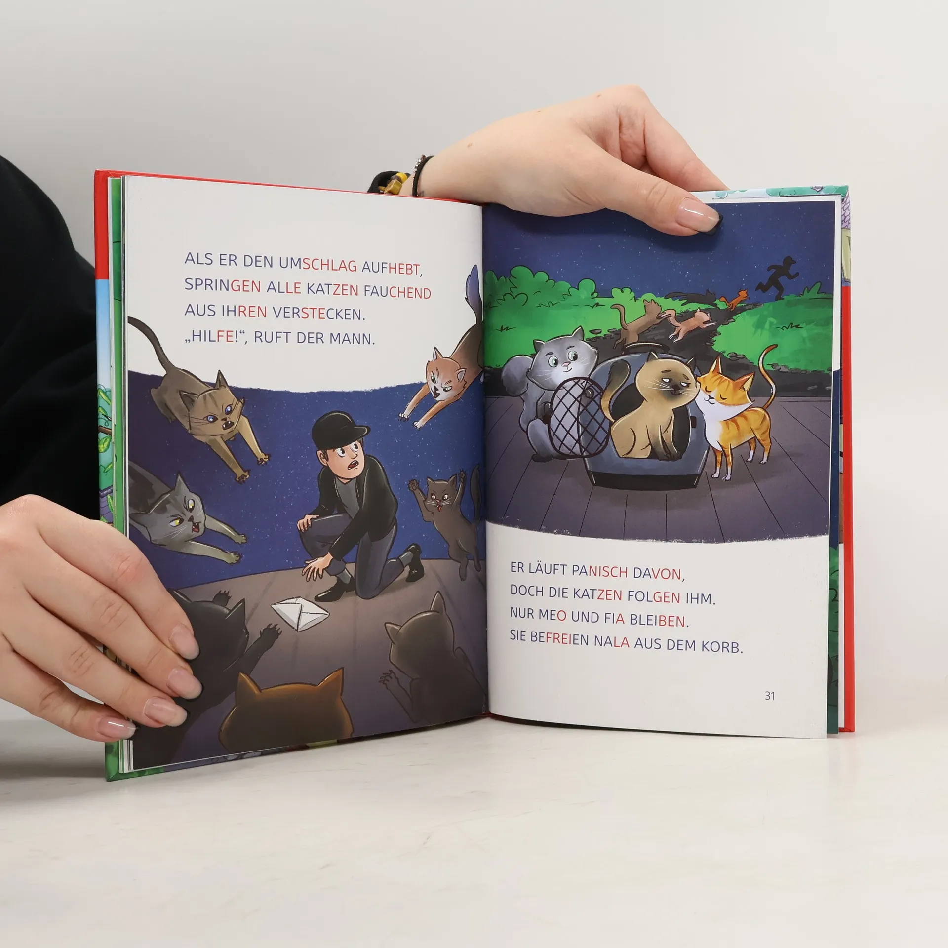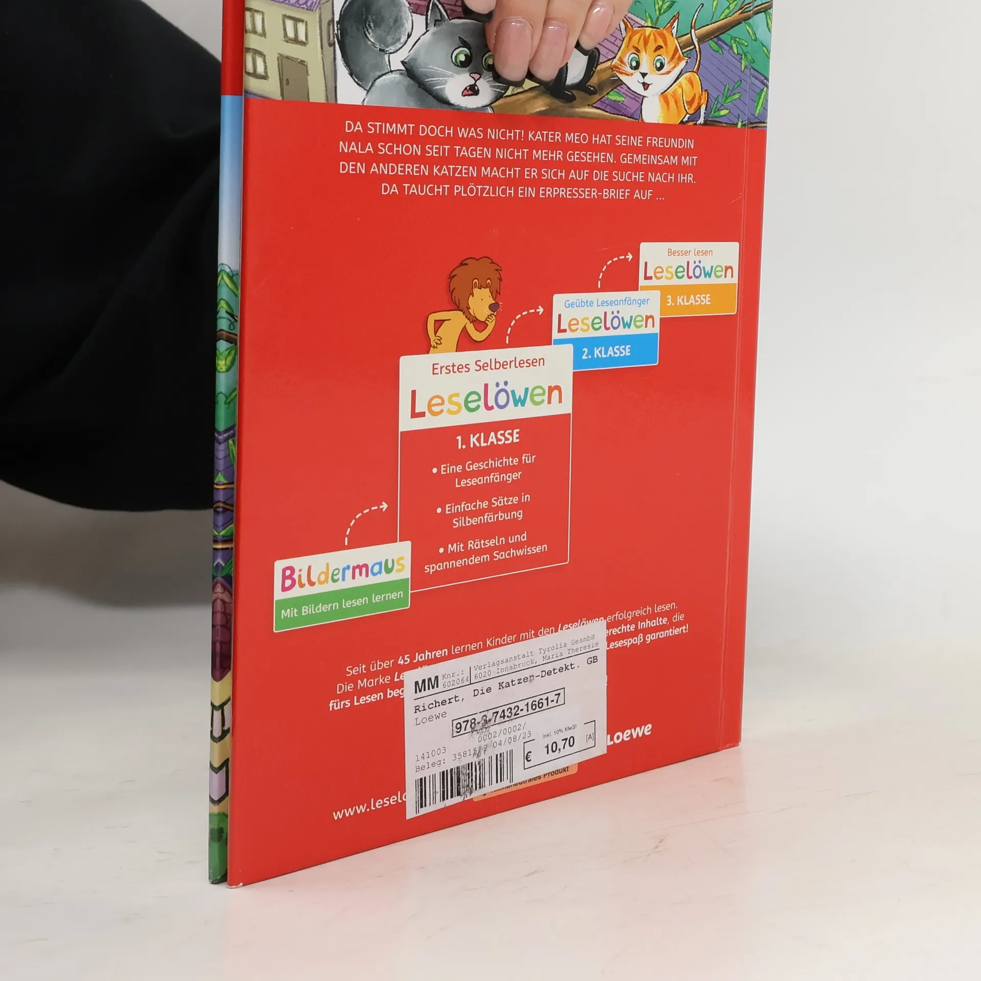 Da stimmt doch was nicht! Kater Meo hat seine Freundin Nala schon seit Tagen nicht mehr gesehen. Gemeinsam mit den anderen Katzen macht er sich auf die Suche nach ihr. Da taucht plötzlich ein Erpresser-Brief auf. Schenken Sie Ihrem Kind das bewährte Erfolgskonzept zum Lesenlernen. Lesenlernen ganz einfach - mit den Erstlesebüchern der Reihe Leselöwen für die 1. Klasse. Die Kinderbuch-Bestseller unterstützen mit vielen Extras das Textverständnis von Kindern ab 6 Jahren: Eine spannende Krimigeschichte mit Silbenfärbung zum leichteren Lesenlernen Seit über 45 Jahren lernen Kinder mit den Leselöwen erfolgreich lesen Über 27 Millionen verkaufte Exemplare Die Nr. 1 in Deutschland, Österreich und der Schweiz Spannende Erstlesebücher, unverzichtbar zum Lesenlernen mit Spaß Von Lehrern mitentwickelt und empfohlen, von Grundschülern getestet Einfache, kurze Sätze in großer Fibelschrift unterstützen optimal den LeselernProzess Genau auf die Interessen und Lesefähigkeiten von Grundschülern ausgerichtet Mit Frage und Übungsteil zur Förderung des Textverständnisses Inklusive spannendem Schon gewusstSachwissen Abwechslungsreiche Quizfragen auf Antolin steigern die Lesemotivation Klimaneutrales Produkt - Wir unterstützen ausgewählte Klimaprojekte!