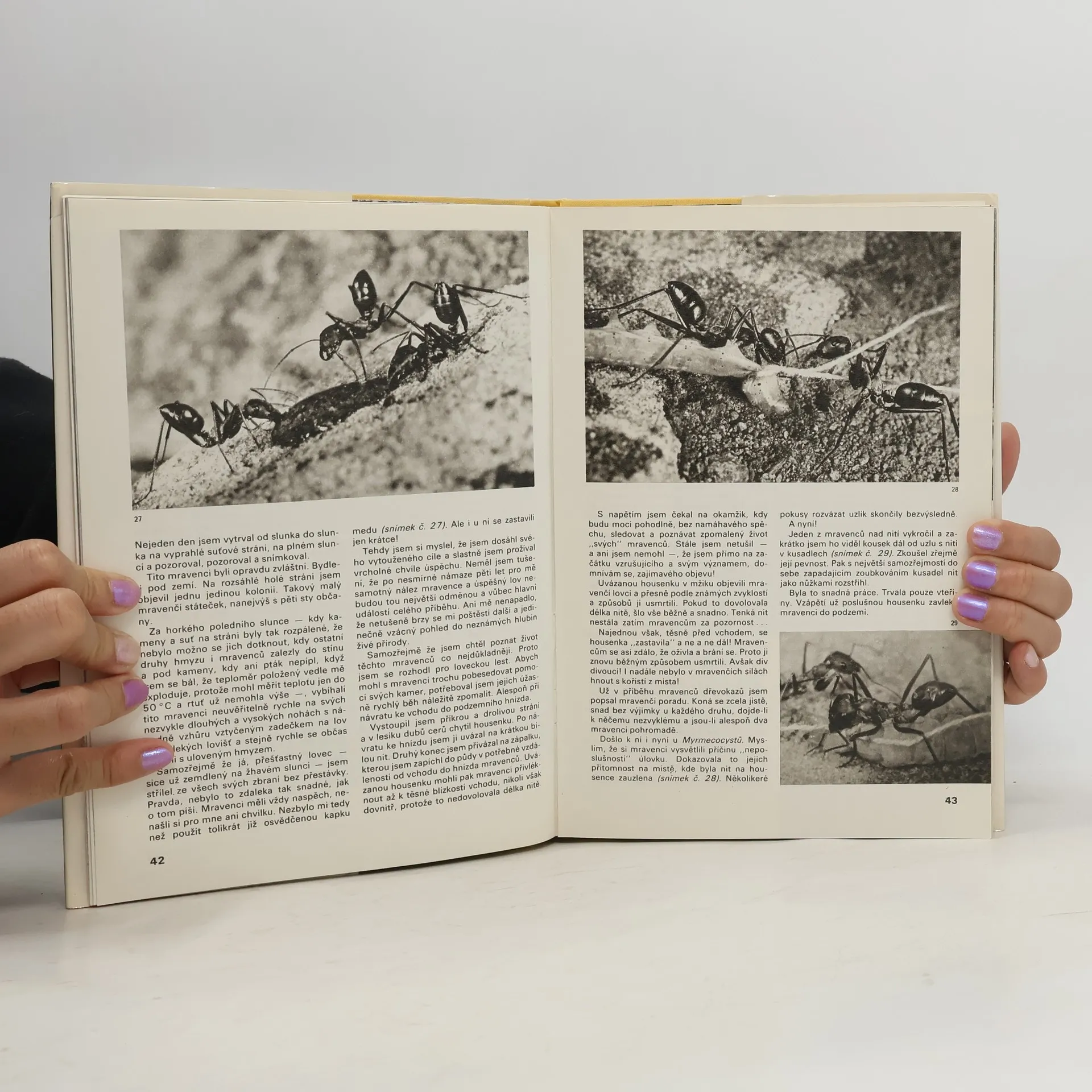 V neobvyklých fotografických záběrech, doplněných zasvěceným vyprávěním, přibližuje autor záhady hmyzího života. Cenné poznatky o chování mravenců, vos, brouků, motýlů a pavouků v nejrůznějších situacích, získal dlouholetým pozorováním a studiem, jehož výsledky dokázal slovem iobrazem přetlumočit čtenáři. 2. vydání