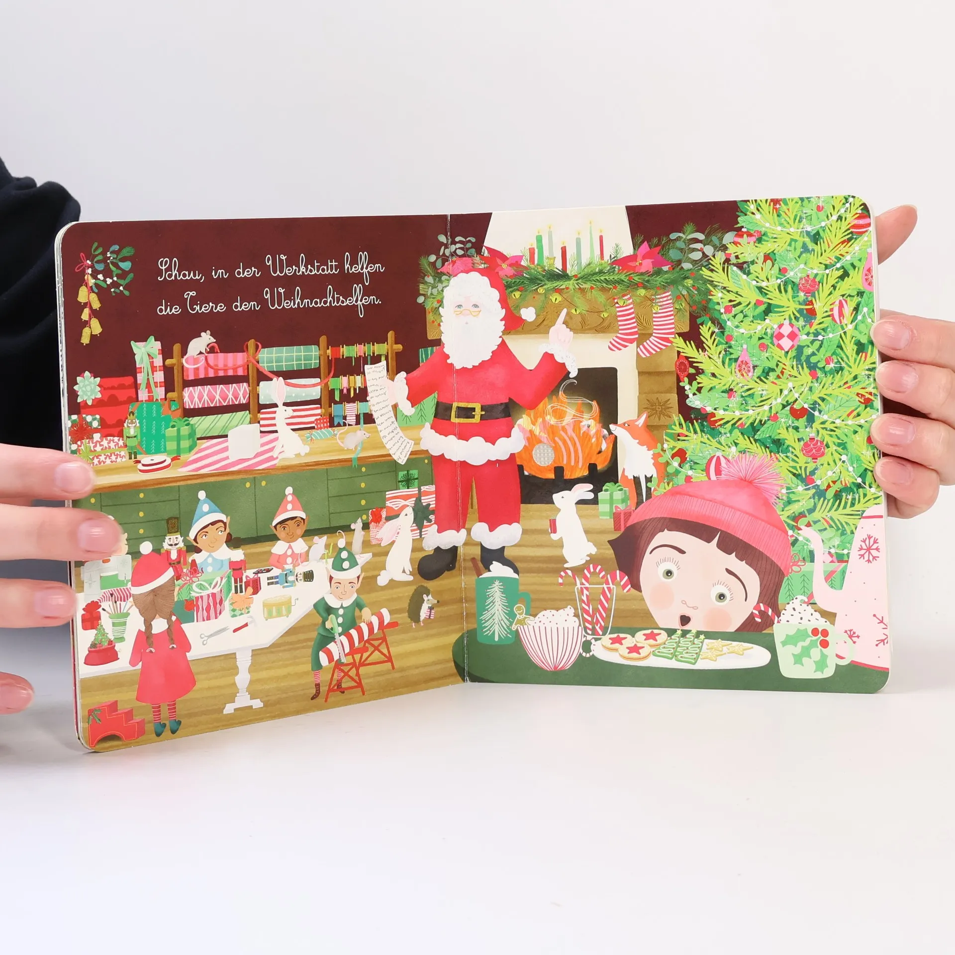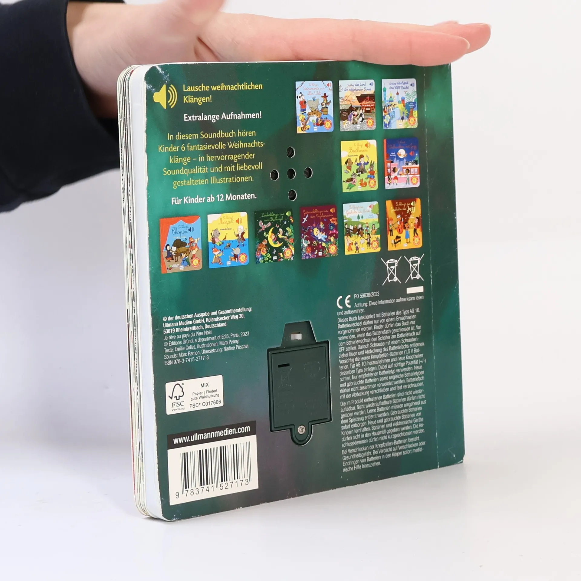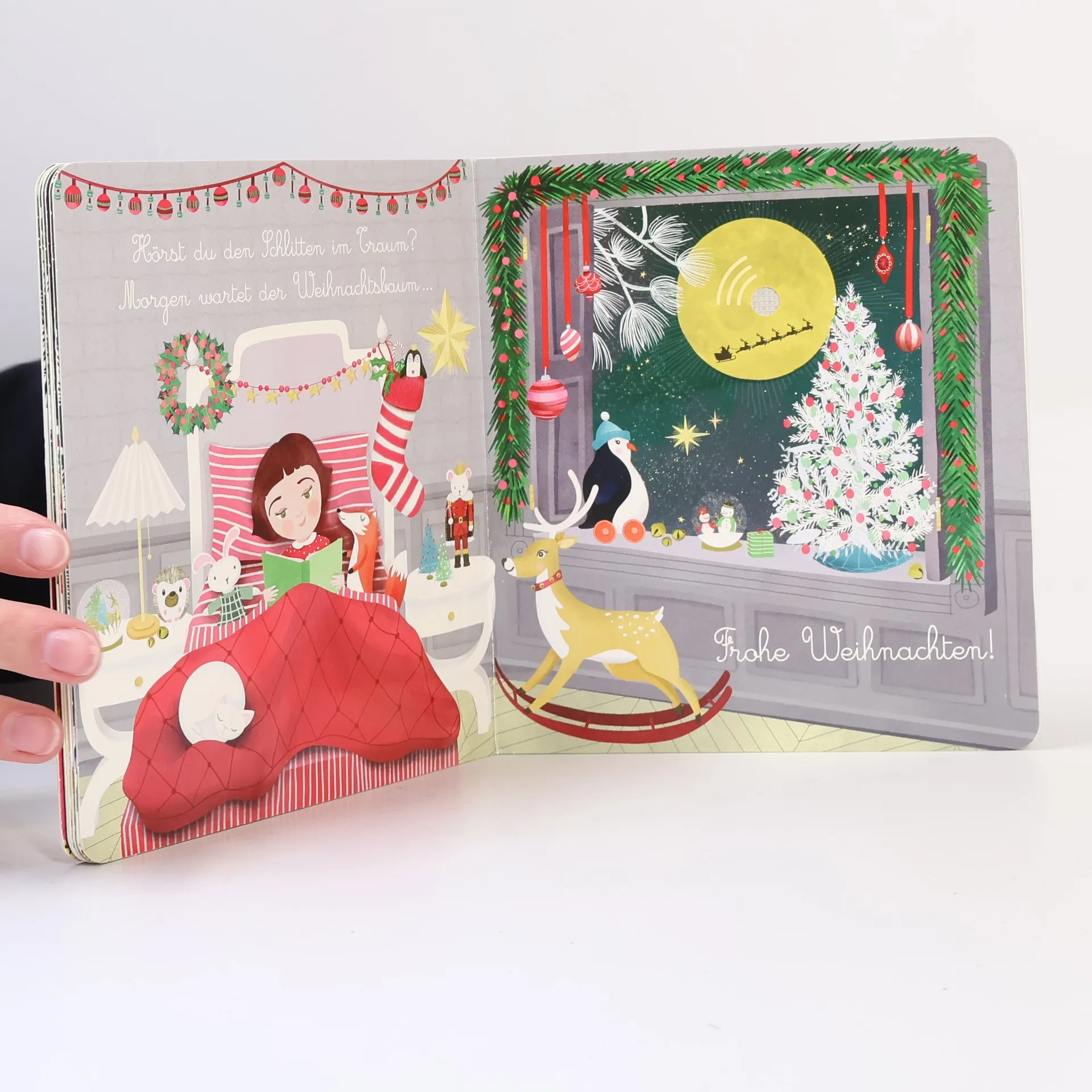Lausche weihnachtlichen Klängen! In diesem Soundbuch hören Kinder 6 fantasievolle Weihnachtsklänge – in hervorragender Soundqualität und mit liebevoll gestalteten Illustrationen. • Soundbuch mit Geräuschen und Klängen zu Weihnachten für Kinder ab 1 Jahr • Interaktives Musik-Bilderbuch mit 6 Sounds in hervorragender Klangqualität • Eine schöne Empfehlung für die Weihnachtszeit