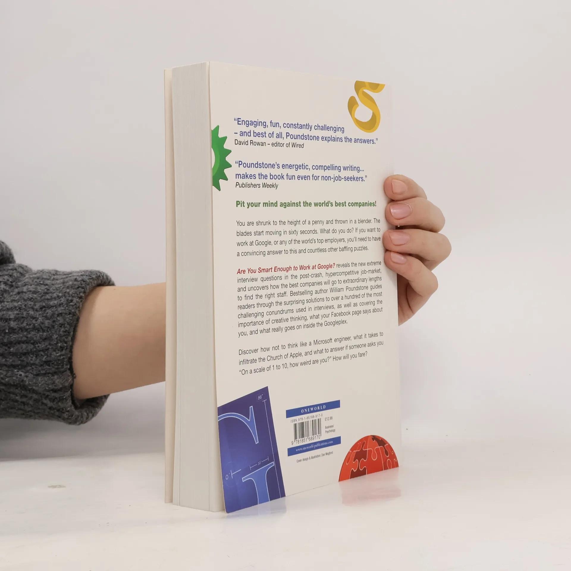 You are shrunk to the height of a penny and thrown in a blender. The blades start moving in sixty seconds. What do you do? If you want to work at Google, or any of the world’s top employers, you’ll need to have a convincing answer to this and countless other baffling puzzles. Are You Smart Enough to Work at Google? Reveals the new extreme interview questions in the postcrash, hypercompetitive job-market and uncovers the extraordinary lengths to which the best companies will go to find the right staff. Bestselling author William Poundstone guides readers through the surprising solutions to over a hundred of the most challenging conundrums used in interviews, as well as covering the importance of creative thinking, what your Facebook page says about you, and what really goes on inside the Googleplex. How will you fare?
