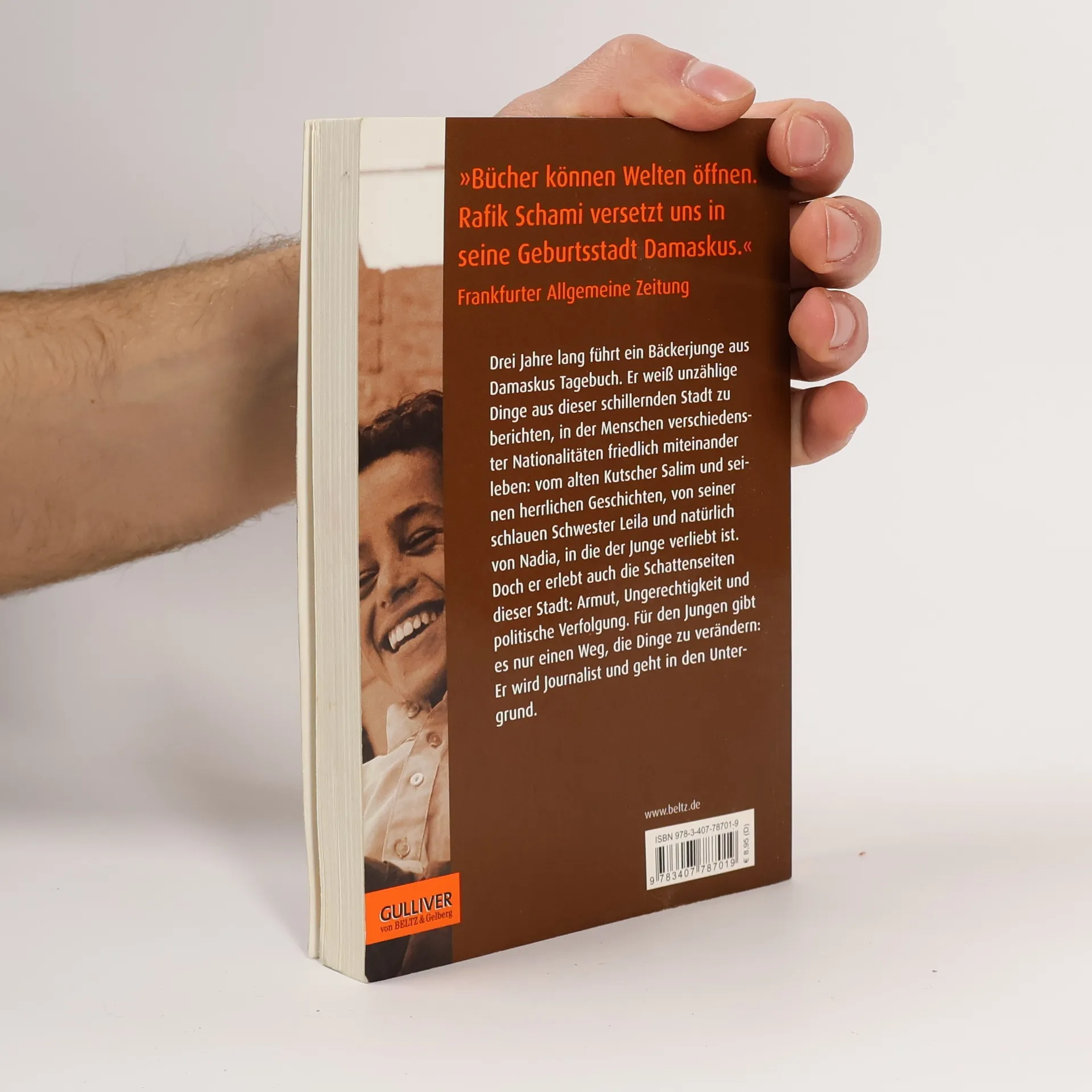 Ein Bäckerjunge in Damaskus führt Tagebuch - und wird zum Untergrundjournalisten. Über mehrere Jahre führt ein Bäckerjunge in Damaskus ein Tagebuch. Es gibt viel Schönes, Poetisches und Lustiges zu berichten aus der Stadt, in der Menschen so vieler Nationalitäten miteinander leben: Vom alten Kutscher und Geschichtenerzähler Salim, von seiner Liebe zu Nadja und vom Basar, auf dem die Mutter Meisterin im Handeln ist. Aber es gibt auch Armut, Ungerechtigkeit und politische Verfolgung in der Stadt. Der Bäckerjunge wird zum Journalisten - im Untergrund.