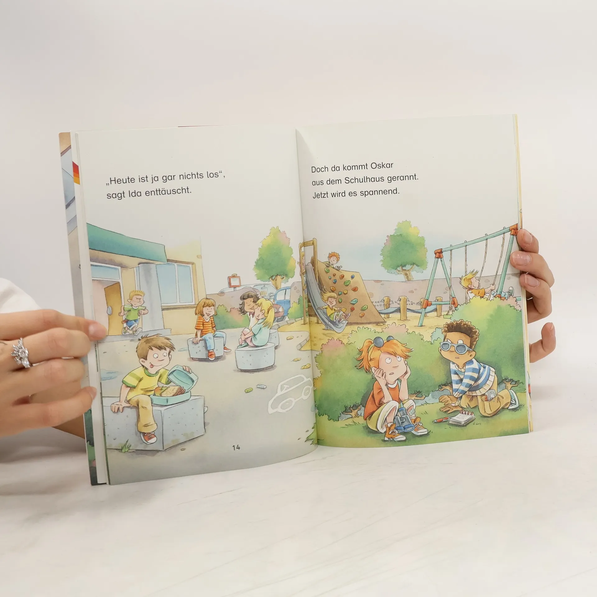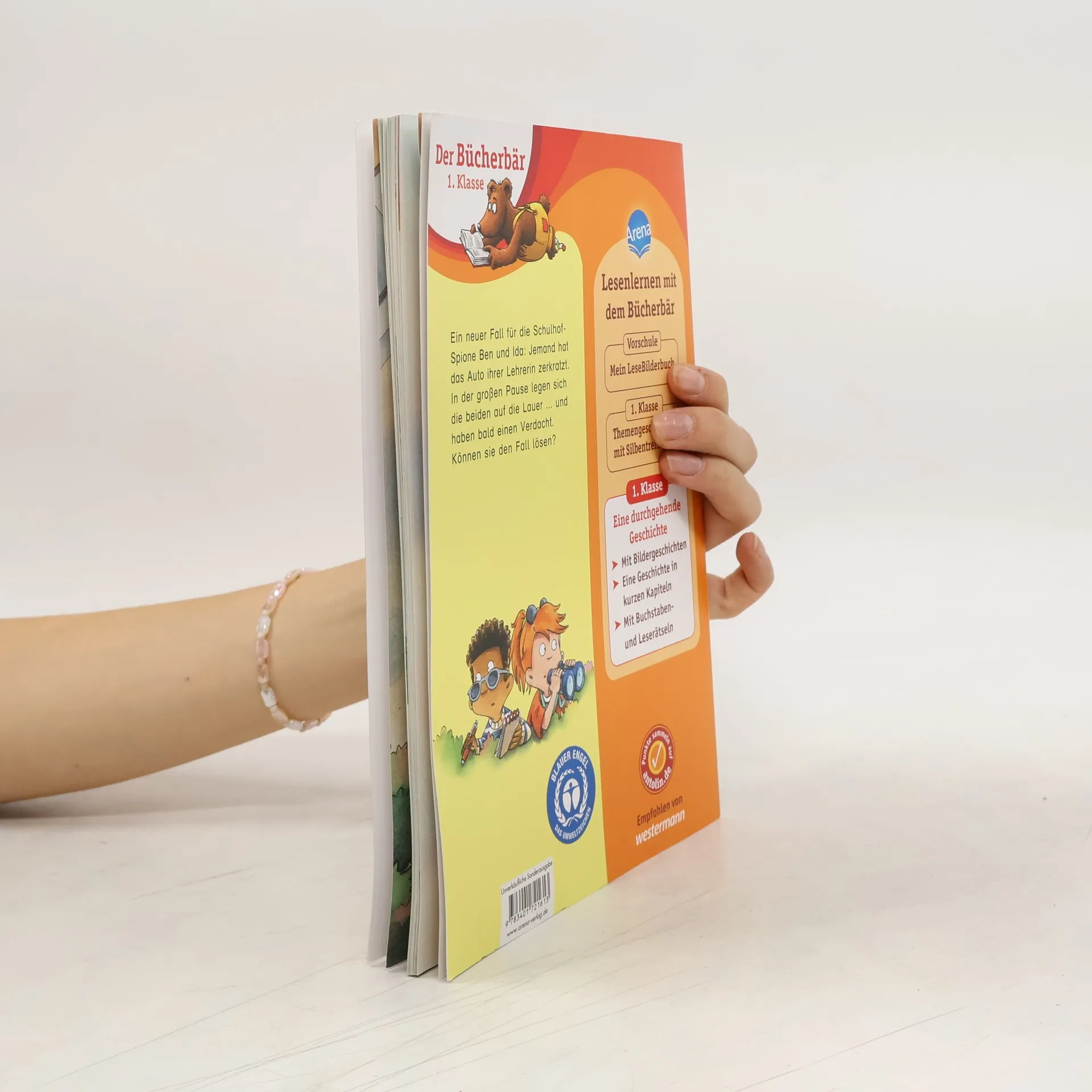 Lesen lernen mit einem spannenden Spionage-Fall ? Das macht stark für die erste Klasse Ben und Ida sind die Schulhof-Spione, sie kommen hinter jedes Geheimnis. Den gemeinen Oskar beobachten sie deshalb besonders gründlich in der großen Pause: Er sperrt jemanden ins Klo ein, zieht ein Mädchen an den Haaren und ärgert überhaupt gern andere Kinder. Klar, dass der Verdacht sofort auf ihn fällt, als Frau Hagner Kratzer an ihrem Auto entdeckt. Können Ben und Ida den Fall lösen? Dieses Buch richtet sich an Leseanfänger in der 1. Klasse. Die übersichtlichen Leseeinheiten und kurzen Zeilen sind ideal zum Lesenlernen. Zahlreiche Bildergeschichten unterstützen das Leseverständnis. Zusätzlich regen lustige Buchstaben- und Leserätsel am Ende des Buches zum Nachdenken und zum Gespräch über die Geschichte an. Denn Kinder, die viel Gelegenheit zum Sprechen haben, lernen schneller lesen. • Empfohlen von Westermann • Gedruckt auf Umweltpapier und zertifiziert mit dem „Blauen Engel“ • Der Titel ist auf Antolin.de gelistet