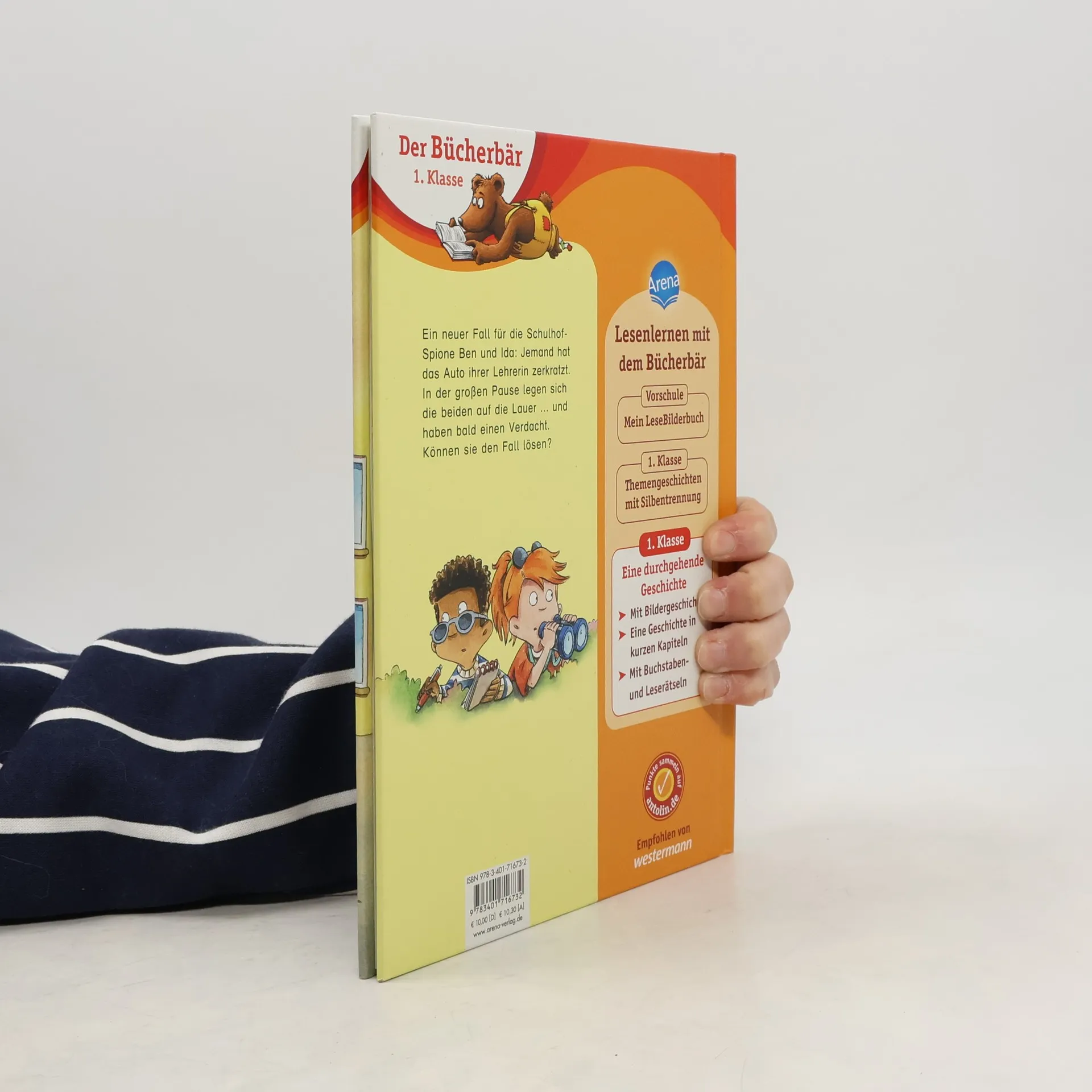 Lesen lernen mit einem spannenden Spionage-Fall ? Das macht stark für die erste Klasse Ben und Ida sind die Schulhof-Spione, sie kommen hinter jedes Geheimnis. Den gemeinen Oskar beobachten sie deshalb besonders gründlich in der großen Pause: Er sperrt jemanden ins Klo ein, zieht ein Mädchen an den Haaren und ärgert überhaupt gern andere Kinder. Klar, dass der Verdacht sofort auf ihn fällt, als Frau Hagner Kratzer an ihrem Auto entdeckt. Können Ben und Ida den Fall lösen? Dieses Buch richtet sich an Leseanfänger in der 1. Klasse. Die übersichtlichen Leseeinheiten und kurzen Zeilen sind ideal zum Lesenlernen. Zahlreiche Bildergeschichten unterstützen das Leseverständnis. Zusätzlich regen lustige Buchstaben- und Leserätsel am Ende des Buches zum Nachdenken und zum Gespräch über die Geschichte an. Denn Kinder, die viel Gelegenheit zum Sprechen haben, lernen schneller lesen. • Empfohlen von Westermann • Gedruckt auf Umweltpapier und zertifiziert mit dem „Blauen Engel“ • Der Titel ist auf Antolin.de gelistet