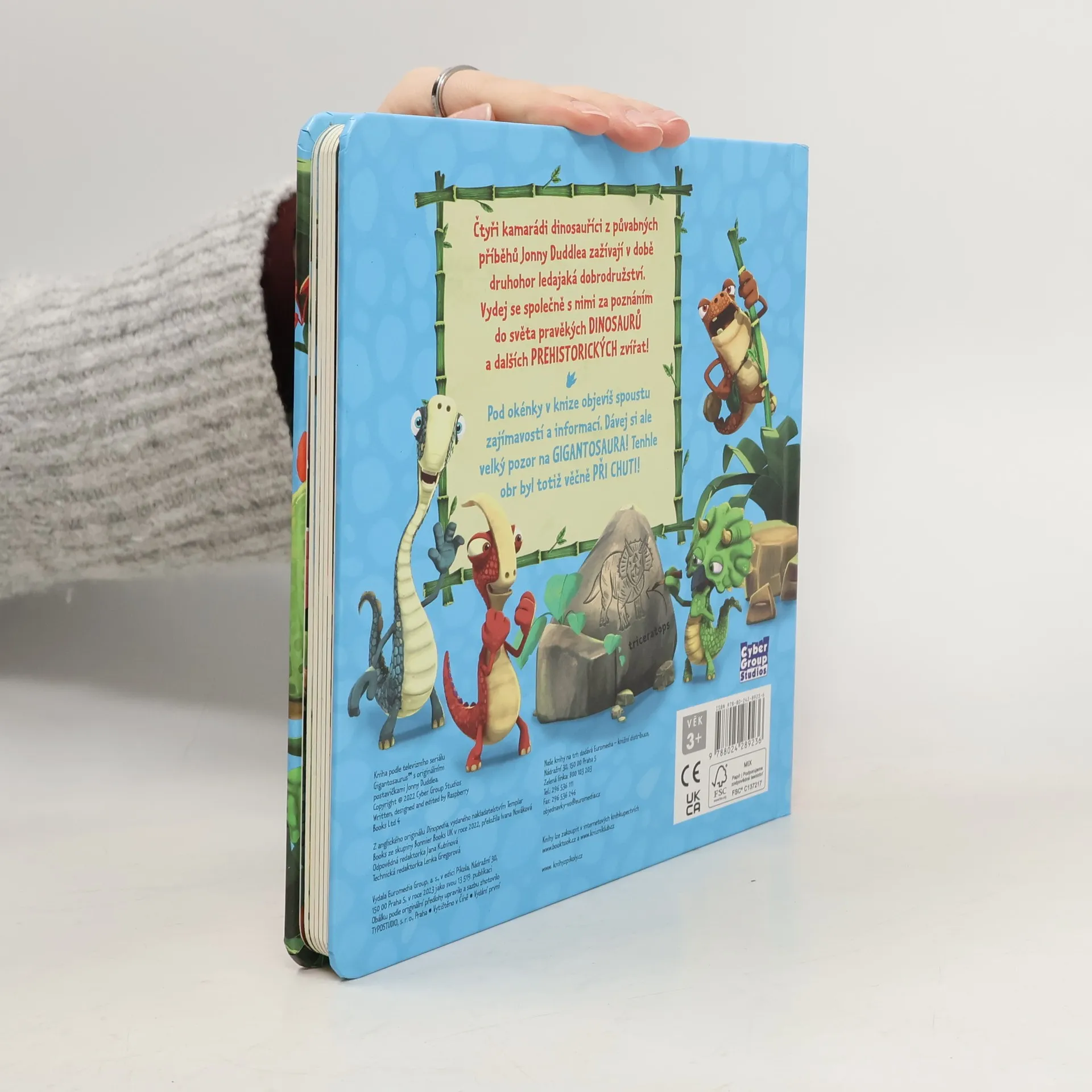 Čtyři kamarádi dinosauříci z půvabných příběhů Jonny Duddlea zažívají v době druhohor ledajaká dobrodružství. Vydej se společně s nimi za poznáním do světa pravěkých DINOSAURŮ a dalších PREHISTORICKÝCH zvířat! Pod okénky v knize objevíš spoustu zajímavostí a informací. Dávej si ale velký pozor na GIGANTOSAURA! Tenhle obr byl totiž věčně PŘI CHUTI!