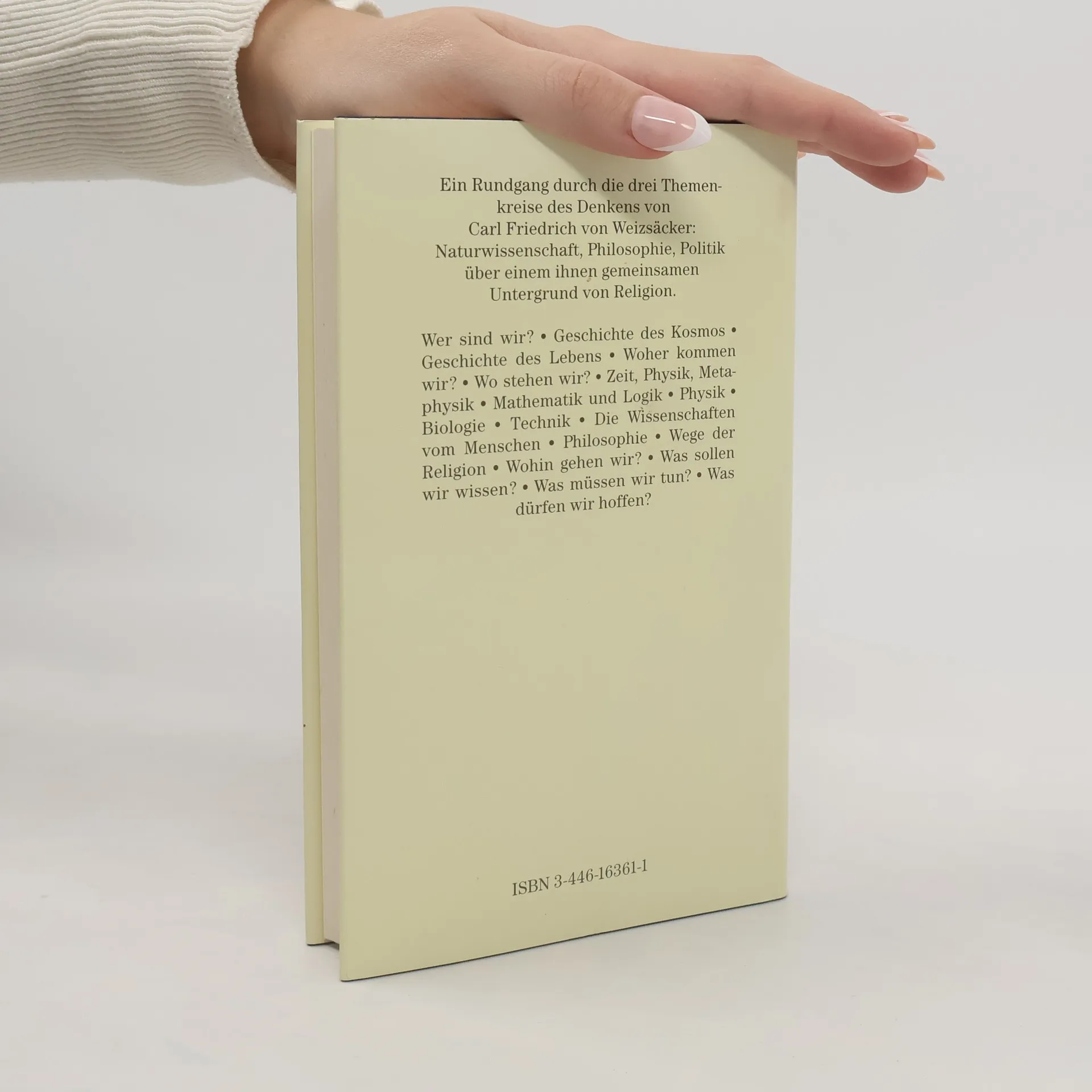 Nachhaltig hat Carl Friedrich von Weizsäcker uns bewußtgemacht, daß Natur, Mensch und Geschichte als Einheit gedacht werden müssen. Anschaulich hat er seine Leser immer wieder über – auch schwierige – Fragen der modernen Naturwissenschaft und Naturphilosophie aufgeklärt und dabei aus seiner umfassenden Kenntnis der modernen Wissenschaft, der Kulturgeschichte, der Politik, der Theologie und der Ethik geschöpft. Sein neuestes Buch kann als eine komprimierte Summe seines Denkens und als Leitfaden durch die komplexe Problematik seines Werkes gelesen werden.