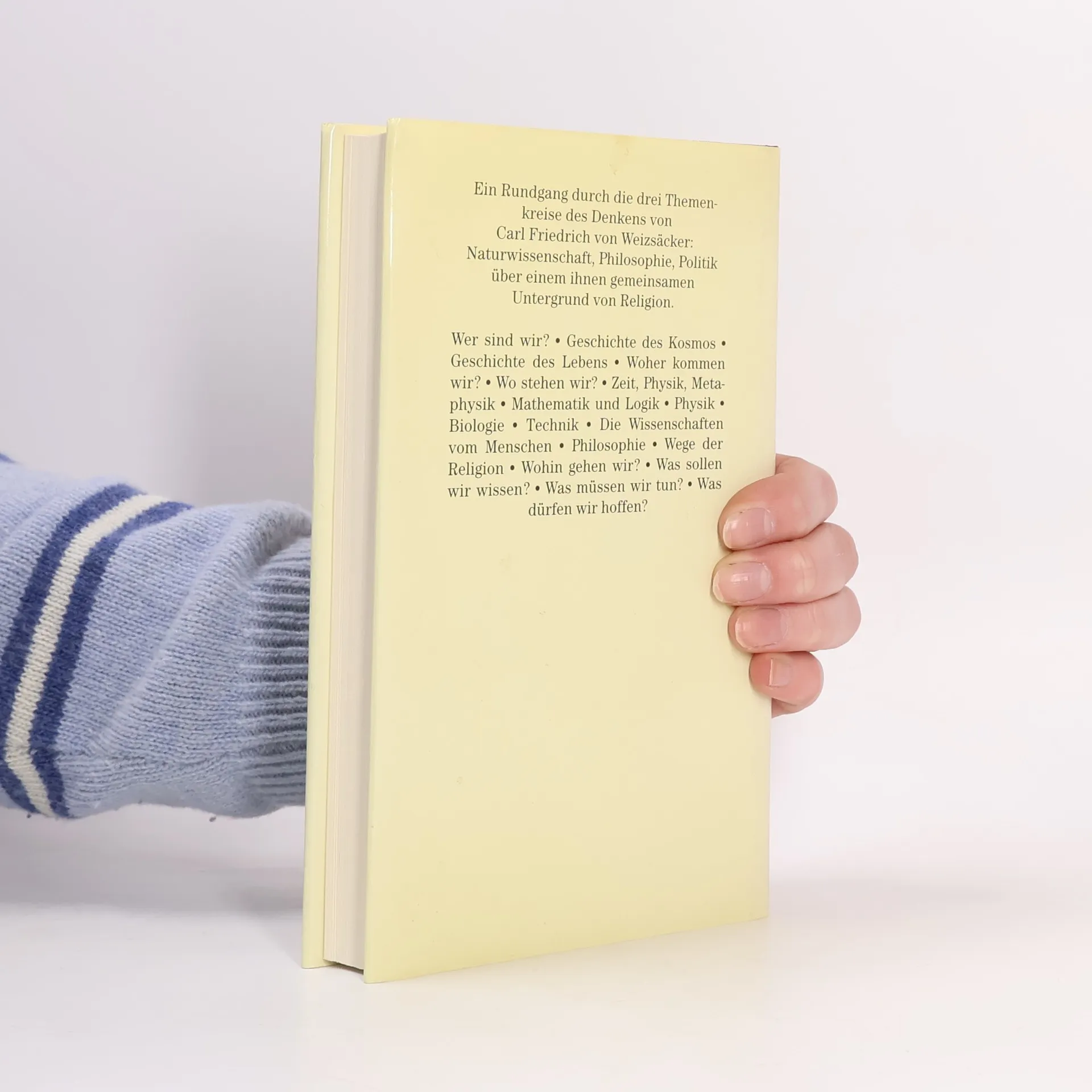 Nachhaltig hat Carl Friedrich von Weizsäcker uns bewußtgemacht, daß Natur, Mensch und Geschichte als Einheit gedacht werden müssen. Anschaulich hat er seine Leser immer wieder über – auch schwierige – Fragen der modernen Naturwissenschaft und Naturphilosophie aufgeklärt und dabei aus seiner umfassenden Kenntnis der modernen Wissenschaft, der Kulturgeschichte, der Politik, der Theologie und der Ethik geschöpft. Sein neuestes Buch kann als eine komprimierte Summe seines Denkens und als Leitfaden durch die komplexe Problematik seines Werkes gelesen werden.