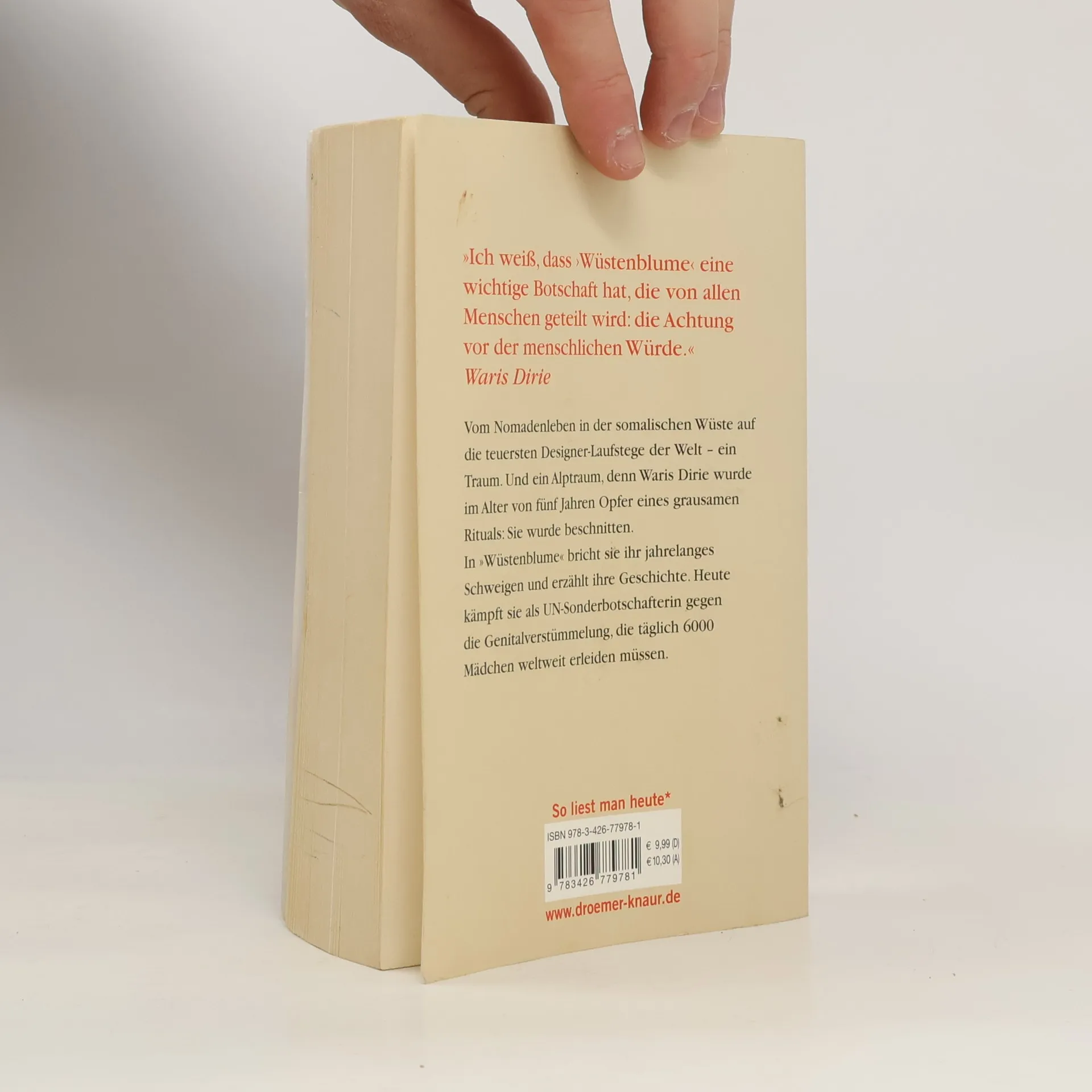 Vom Nomadenleben in der somalischen Wüste auf die teuersten Designer-Laufstege der Welt – ein Traum. Und ein Alptraum, denn Waris Dirie wurde im Alter von fünf Jahren Opfer eines grausamen Rituals: Sie wurde beschnitten. In »Wüstenblume« bricht sie ihr jahrelanges Schweigen und erzählt ihre Geschichte. Ihr Schicksal bewegte die Leser weltweit und wurde ein internationaler Bestseller – die Kino-Verfilmung begeisterte ein Millionenpublikum. Heute kämpft Waris Dirie als UNO-Sonderbotschafterin gegen die Genitalverstümmelung, die täglich 6000 Mädchen weltweit erleiden müssen. »Ich weiß, dass ›Wüstenblume‹ eine wichtige Botschaft hat, die von allen Menschen geteilt wird: die Achtung vor der menschlichen Würde.« Waris Dirie