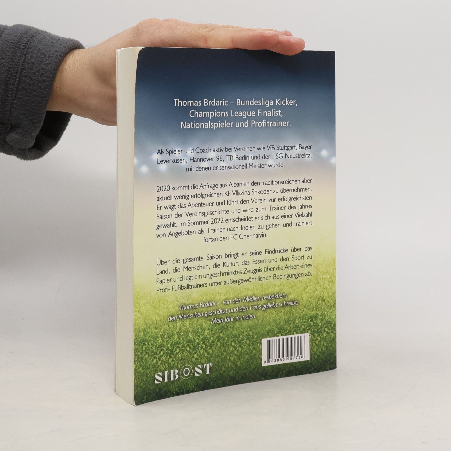 Als Spieler und Coach aktiv bei Vereinen wie VfB Stuttgart, Bayer Leverkusen, Hannover 96, TB Berlin und der TSG Neustrelitz, mit denen er sensationell Meister wurde. 2020 kommt die Anfrage aus Albanien den traditionsreichen aber aktuell wenig erfolgreichen KF Vllazina Shkoder zu übernehmen. Er wagt das Abenteuer und führt den Verein zur erfolgreichsten Saison der Vereinsgeschichte und wird zum Trainer des Jahres gewählt. Im Sommer 2022 entscheidet er sich aus einer Vielzahl von Angeboten als Trainer nach Indien zu gehen und trainiert fortan den FC Chennaiyin. Über die gesamte Saison bringt er seine Eindrücke über das Land, die Menschen, die Kultur, das Essen und den Sport zu Papier und legt ein ungeschminktes Zeugnis über die Arbeit eines Profi- Fußballtrainers unter außergewöhnlichen Bedingungen ab. Thomas Brdaric – von den Medien respektiert, den Menschen geschätzt und den Fans geliebt schreibt: Mein Jahr in Indien.