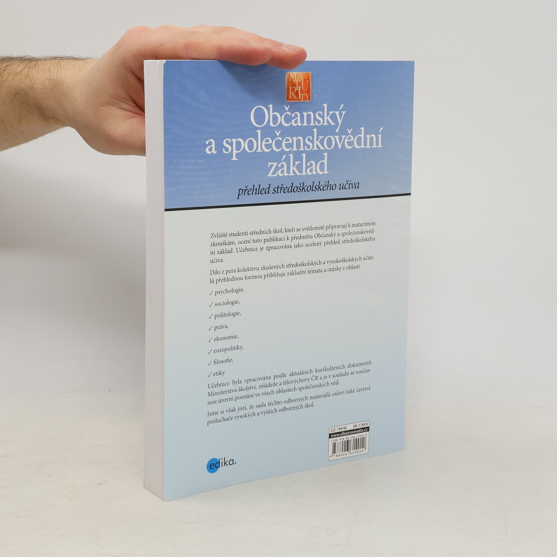 Především středoškolským studentům připravujícím se k maturitě z předmětu Občanský a společenskovědní základ určitě přijde vhod tato publikace, která je zpracována jako moderní a ucelený přehled středoškolského učiva z oblasti psychologie, sociologie, politologie, práva, ekonomie, filosofie a europolitiky. Publikace určitě najde oblibu i mezi čerstvými posluchači vysokých a vyšších škol, pro které poslouží například jako sada odborných materiálů pro opakování základů jednotlivých oblastí.