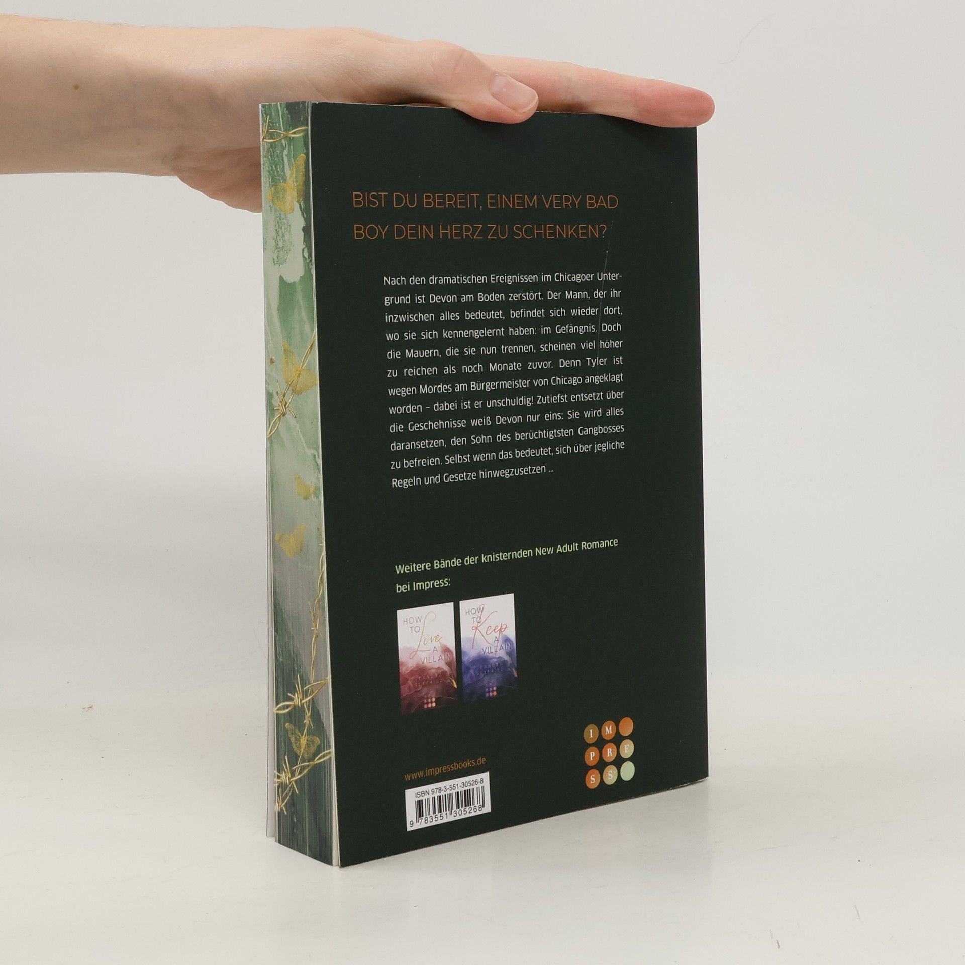 **Bist du bereit, einem Very Bad Boy dein Herz zu schenken?** Nach den dramatischen Ereignissen im Chicagoer Untergrund ist Devon am Boden zerstört. Der Mann, der ihr inzwischen alles bedeutet, befindet sich nun wieder dort, wo sie sich kennengelernt haben: im Gefängnis. Doch die Mauern, die sie nun trennen, scheinen viel höher zu reichen als noch Monate zuvor. Denn Tyler ist wegen Mordes am Bürgermeister von Chicago angeklagt worden – dabei ist er unschuldig! Zutiefst entsetzt über die Geschehnisse weiß Devon nur eins: Sie wird alles daransetzen, den Sohn des berüchtigtsten Gangbosses zu befreien. Selbst wenn das bedeutet, sich über jegliche Regeln und Gesetze hinwegzusetzen ... Romantic Suspense mit einer Protagonistin, die selbst zum Bad Girl wird – elektrisierend und atemberaubend vor der Kulisse Chicagos! //Dies ist der dritte Band der knisternden New Adult Romance »Chicago Love«. Alle Bände der Reihe bei Impress: -- How to Love a Villain (Chicago Love 1) -- How to Keep a Villain (Chicago Love 2) -- How to Save a Villain (Chicago Love 3) Die Reihe ist abgeschlossen.//