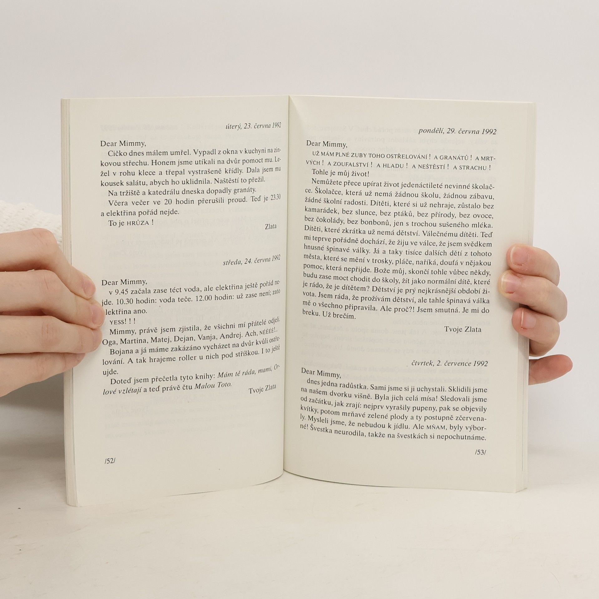 Deník bosenské dívky zachycuje dva roky jejího života v mírovém a posléze válečném Sarajevu. Od dětských starostí se školou a popisu školních zábav až po líčení těžké situace v ostřelovaném městě - v nedostatku, při loučení s přáteli, kteří město opouštějí či v jeho zdech umírají. Kniha má kromě dokumentární hodnoty i hodnotu literární - proměny životního postoje mladého člověka jsou zachyceny velmi sugestivně.... celý text