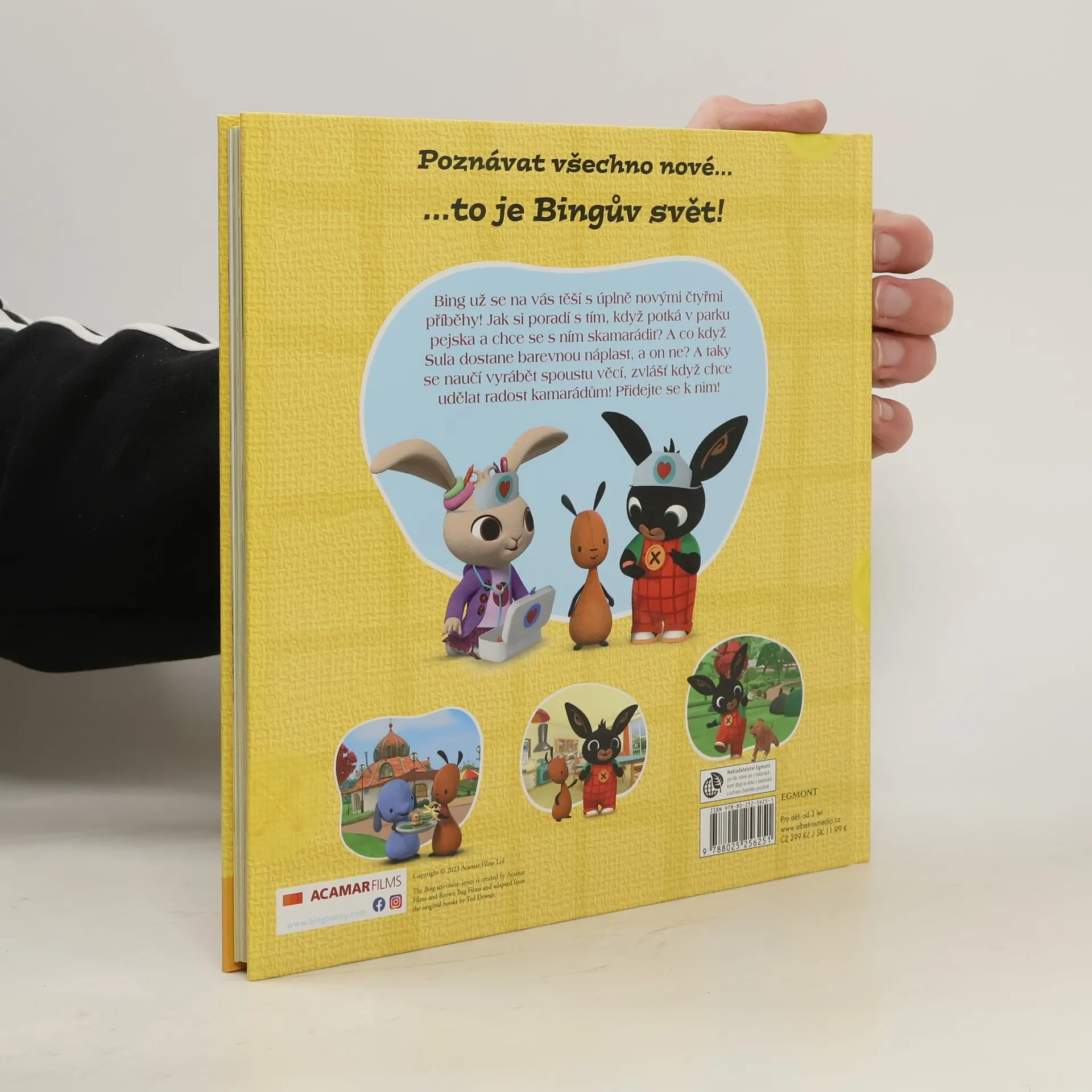 Bing už se na vás těší s úplně novými čtyřmi příběhy! Jak si poradí s tím, když potká v parku pejska a chce se s ním skamarádit? A co když Sula dostane barevnou náplast, a on ne? A taky se naučí vyrábět spoustu věcí, zvlášť když chce udělat radost kamarádům! Přidejte se k nim!