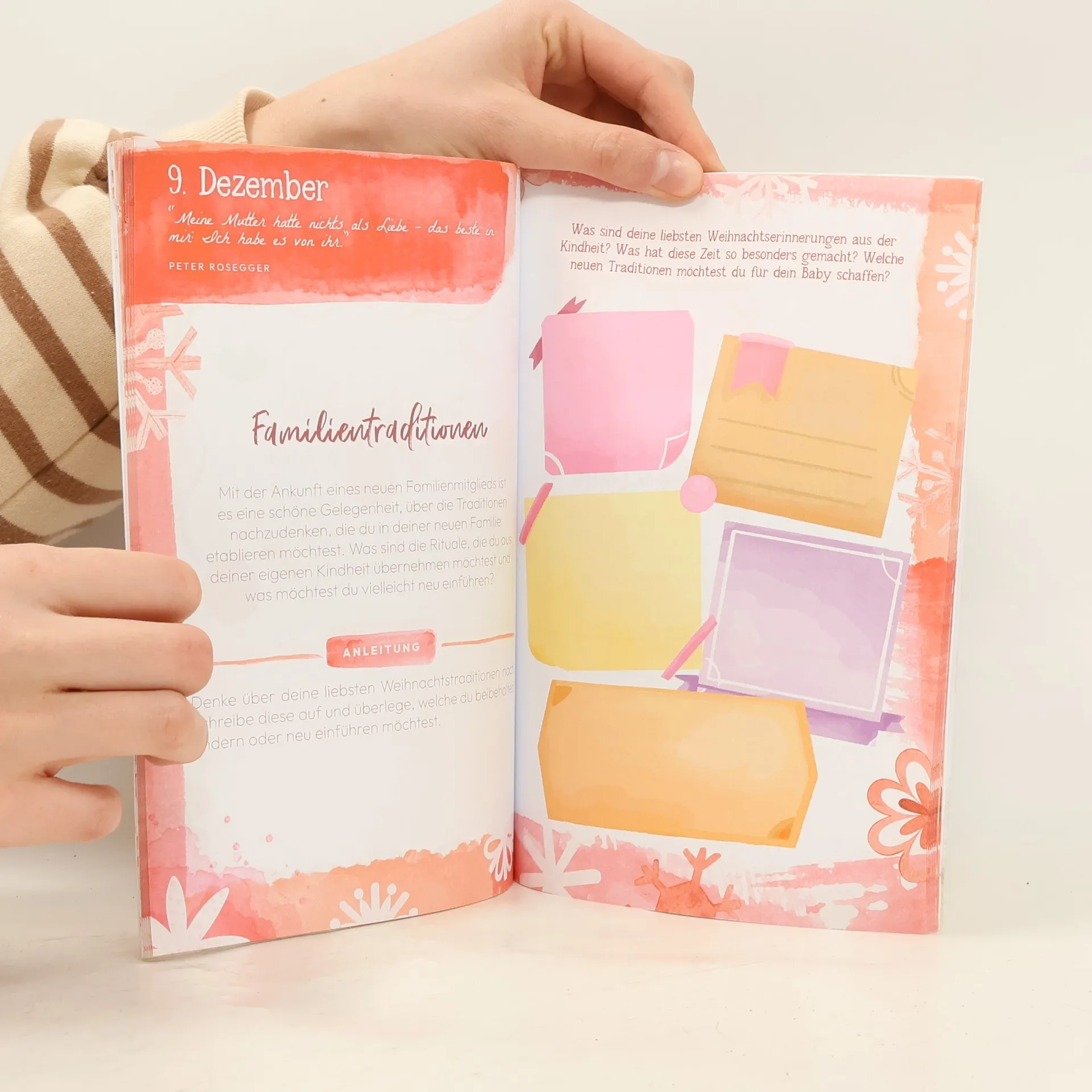 “Babybauch im Advent" ist mehr als nur ein Adventskalender. Es ist Dein täglicher Begleiter durch eine entspannte und bewusste Schwangerschaft. In diesem liebevollen Adventskalender für werdende Mamas entdeckst Du 24 liebevolle Aktivitäten, inspirierende Zitate und praktische Tipps, die Dir Ruhe und Entspannung schenken. Das Buch ist außerdem eine Mischung aus Tagebuch und Fotoalbum, so dass es, während du es benutzt, zu einem wertvollen und schönen Erinnerungsstück wird, das du immer wieder gerne anschauen wirst.Erlebe eine Weihnachtszeit, die ganz auf Dich und Dein ungeborenes Kind ausgerichtet ist, und genieße entspannende Momente, die Dich und Dein Baby näher zusammenbringen.Dieser besondere Adventskalender schenkt Verwandle deine Adventszeit in eine besinnliche und unvergessliche Reise. Mit "Babybauch im Advent" hältst du nicht nur einen besonderen Adventskalender in den Händen, sondern auch einen Wegweiser für eine bewusste und liebevolle Schwangerschaft. Klicke auf „Jetzt kaufen“ und mache diese Adventszeit zu etwas ganz Besonderem!